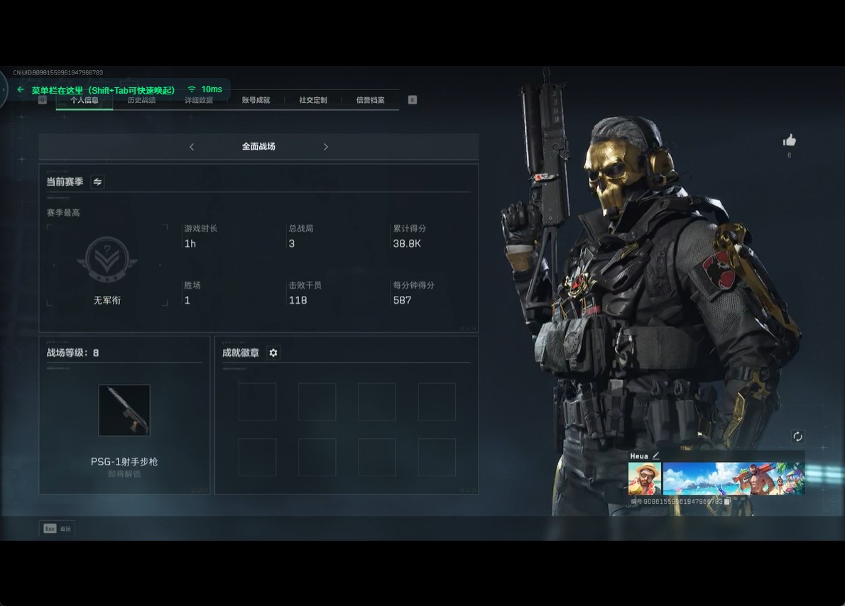 - [11296941]总资产:101.6 2传说枪械 进阶安全箱(9.17到期) 可二次 可修改实名 烽火地带段位:青铜 全面战场段位:无段位 哈夫币:56.348 传说武器皮肤:复合弓-黑-天际线,CAR-15突击步枪-阿米娅 史诗武器皮肤:MP5冲锋枪-深海恐惧,SV-98狙击步枪-林中猎手