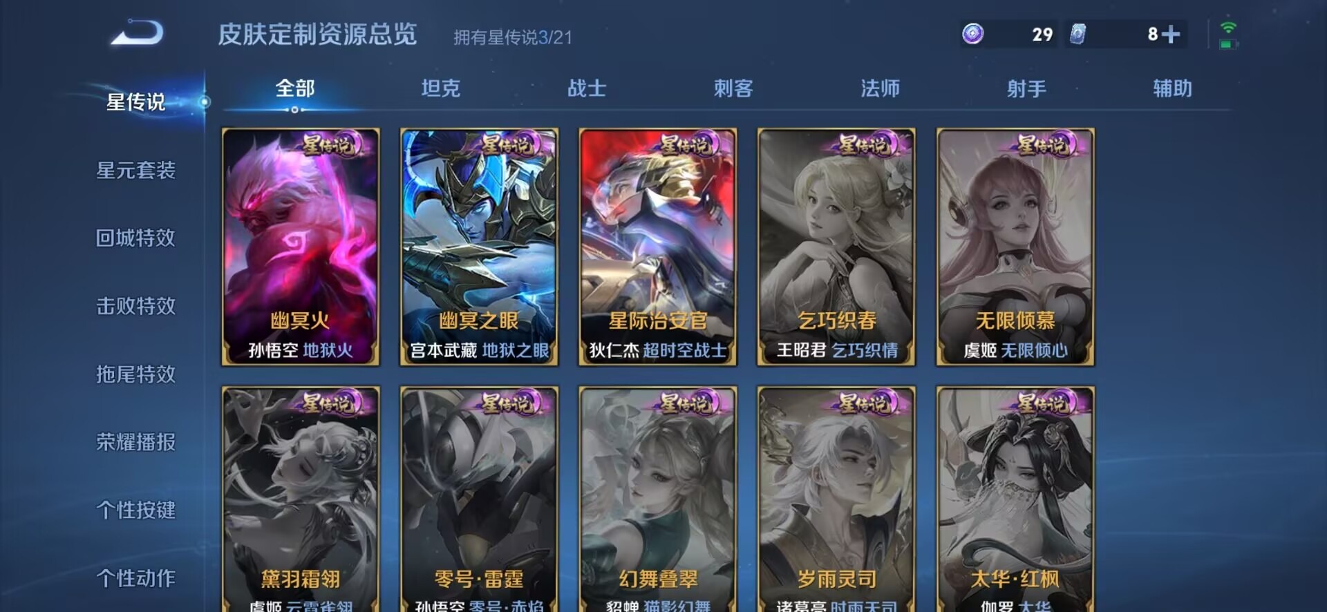 - [12088996]久胜,紫霞,马可年限,-可二次-124英雄-198皮肤-6传说-48史诗 齐天大圣-孙悟空 山海·玄木吟-马可波罗 街头霸王-韩信
