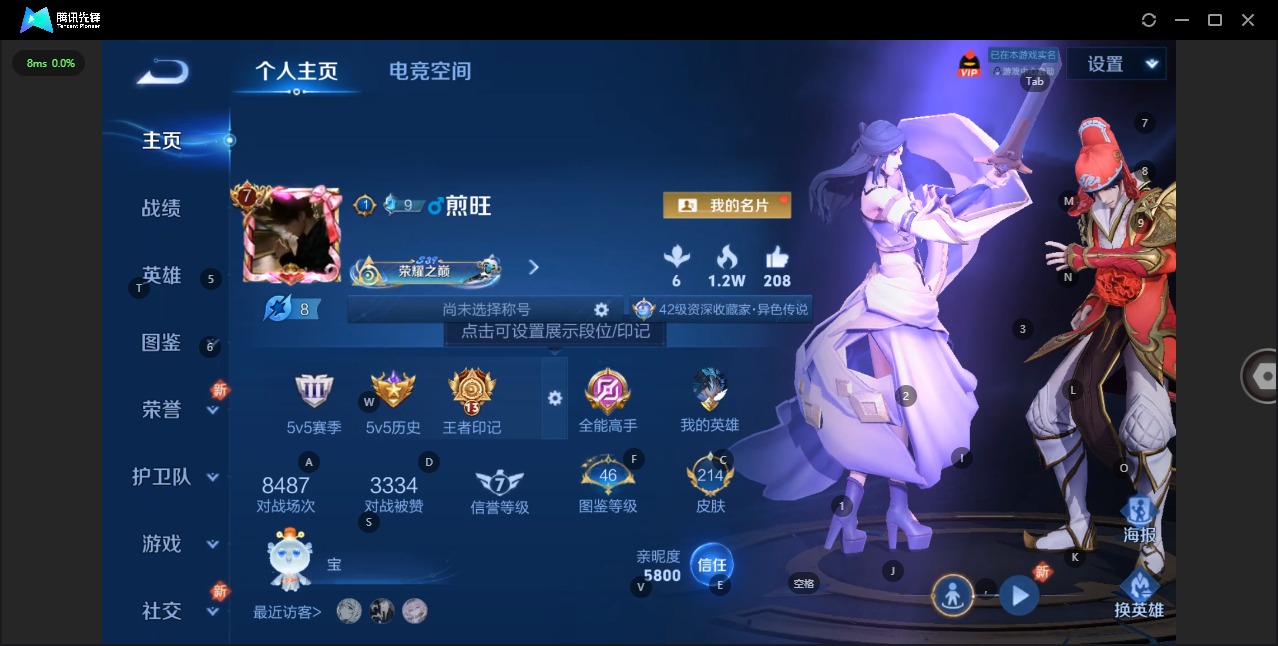 - [11868057]V8 3典藏 28传说 124英雄 240皮肤 可修改实名 优质装备:鸣剑·曳影,九霄神辉(木兰典藏),弑枪猎影(韩信典藏),云鹰飞将(小将军),绛天战甲(鸡嘴战神),久胜战神,一念神魔,末日机甲-孙尚香(绿蚂蚱),地狱之眼,时之恋人-刘备(电焊工),淬星耀世,超时空战士-狄仁杰,花朝如约(花篮子),无双飞将,山海·炽霜斩(李信年限),山海·苍雷引(电光曜子),燃星之曲,浮生妄,霜月吟,澜逐花归海 传说皮:幻光神枪 珍宝阁皮:女武神,玩趣恶龙 限定皮:愿照·九州拓(澜年限),逐霄战戟,鸣野蒿,至尊宝,凤求凰(白切鸡),补天,山海·碧波行(瑶年限),无限倾心-项羽,诗剑行,齐天大圣,五谷丰年,冰锋战神,武圣,天狼运算者,游园惊梦,天狼狩猎者,玄武志(苏烈年限),朱雀志(守约年限),默契交锋-花木兰,孙行者,云端筑梦师,深海之息(深海大菠萝),山海·玄木吟(马可年限) 史诗皮:化蝶舞,石田雨龙,茶境仙,百相守梦-黄忠,紫霞仙子,电玩小子(小书包),黄金分割率,江河有灵,魅语,蒙恬荣光圣徽,偶像歌手,电玩·爆裂旋风,百相守梦(刘备),末日机甲-吕布,猫狗日记-孙策,猫狗日记-大乔,乱世虎臣,修罗,女仆咖啡,摇滚巨星,水果甜心,天才门将,星夜王子,心灵骇客,功夫厨神,暗隐猎兽者,幽灵船长,鬼剑武藏,心灵战警,乐园奇幻夜,舞动绿茵,地狱岩魂,缤纷独角兽,乘风破浪,逐浪之夏,水晶猎龙者,曙光守护者,箭羽风息,金属风暴,原初追逐者,圣诞狂欢,圣诞恋歌,鹰眼统帅,魅力维加斯,赏金猎手,无心,未来纪元-赵云