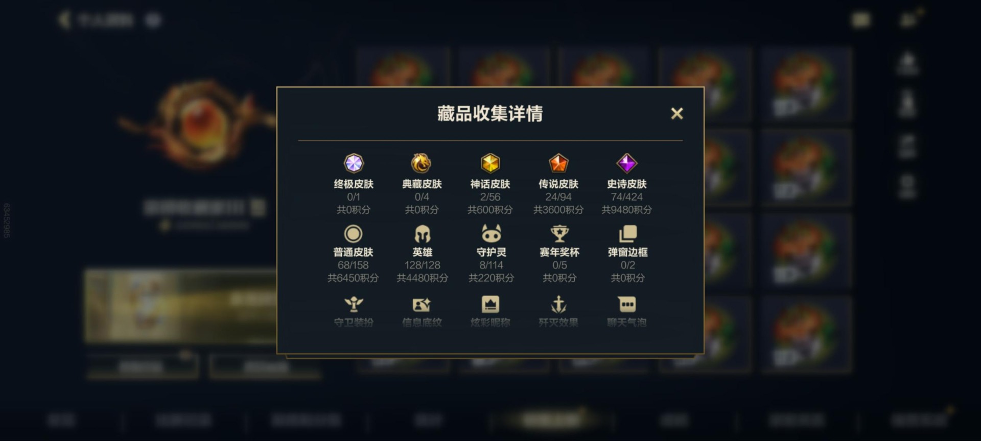 [11554079]可二次 可修改实名 2神话 24传说 73史诗 168皮肤 128英雄 钻石 皮肤:凯南-超级英雄,凯南-超武乾坤:电弧,凯南-刺客信条,凯南-梦境绅探,凯南-奈落之炎,凯南-腥红之月,厄运小姐-电玩女神,厄运小姐-星之守护者,厄运小姐-破败军团,厄运小姐-魅惑女巫,厄运小姐-西部牛仔,阿狸-风纪委员,阿狸-电玩女神,阿狸-幻梦甜心,阿狸-K/DA ALL OUT,艾希-西部天使,艾希-神龙尊者 苍龙,艾希-女皇,艾希-极地女神,内瑟斯-创世魔神,内瑟斯-战地机甲,内瑟斯-炼狱魔犬,内瑟斯-单身贵族,烬-龙冕异士,烬-源计划:升华,烬-暗星尊,烬-灭迹行者,蔚-女警官,蔚-源计划:裁决,蔚-炼狱魔女,蔚-燎原烈焰,崔斯特-怪诞童话,崔斯特-王牌舰长,崔斯特-逍遥赌侠,德莱厄斯-热血班长,德莱厄斯-灌篮高手,德莱厄斯-神王,提莫-小蜜蜂,提莫-欧米伽小队 幽灵特工,提莫-兔宝宝,亚索-斗魂无双,亚索-黑夜使者,亚索-西部牛仔