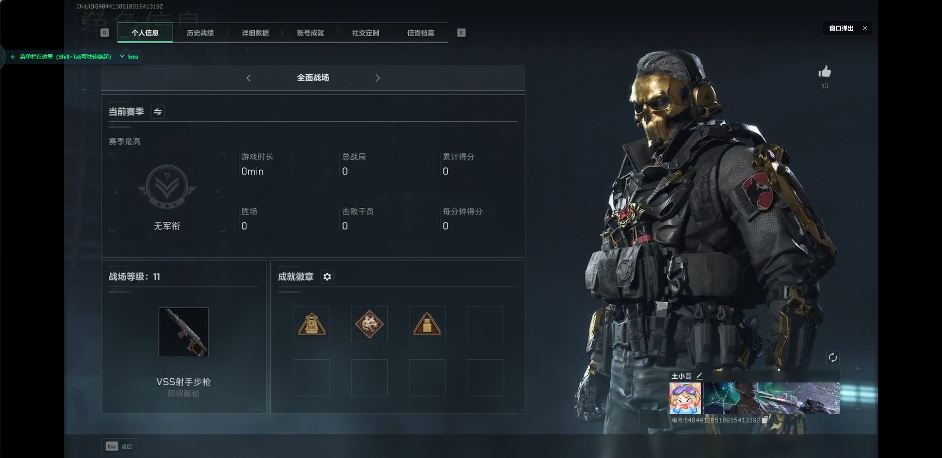- [12226785]总资产:37.7M 1干员外观 11传说枪械 哈夫币:30.028K 可二次 可修改实名 烽火地带段位:铂金 全面战场段位:上等兵 传说武器皮肤:K437突击步枪-几何解构,勇士冲锋枪-能天使-午夜邮差,M4A1突击步枪-阿米娅,CAR-15突击步枪-阿米娅,复合弓-黑-天际线,Vector冲锋枪-狩猎时刻,G3战斗步枪-狩猎时刻,M16A4突击步枪-狩猎时刻,AWM狙击步枪-捞点薯条,腾龙突击步枪-捞点薯条,93R-捞点薯条 史诗武器皮肤:AUG突击步枪-蝮蛇,SV-98狙击步枪-林中猎手,M1014霰弹枪-林中猎手,M16A4突击步枪-竞赛选手,勇士冲锋枪-工业狂潮,SV98狙击步枪-猎鳄行动,P90冲锋枪-紧急戒备,QJB201轻机枪-Old Habits,S12K霰弹枪-曙光,勇士冲锋枪-深海恐惧,AKM突击步枪-林中猎手 干员外观:露娜-黑·天际线