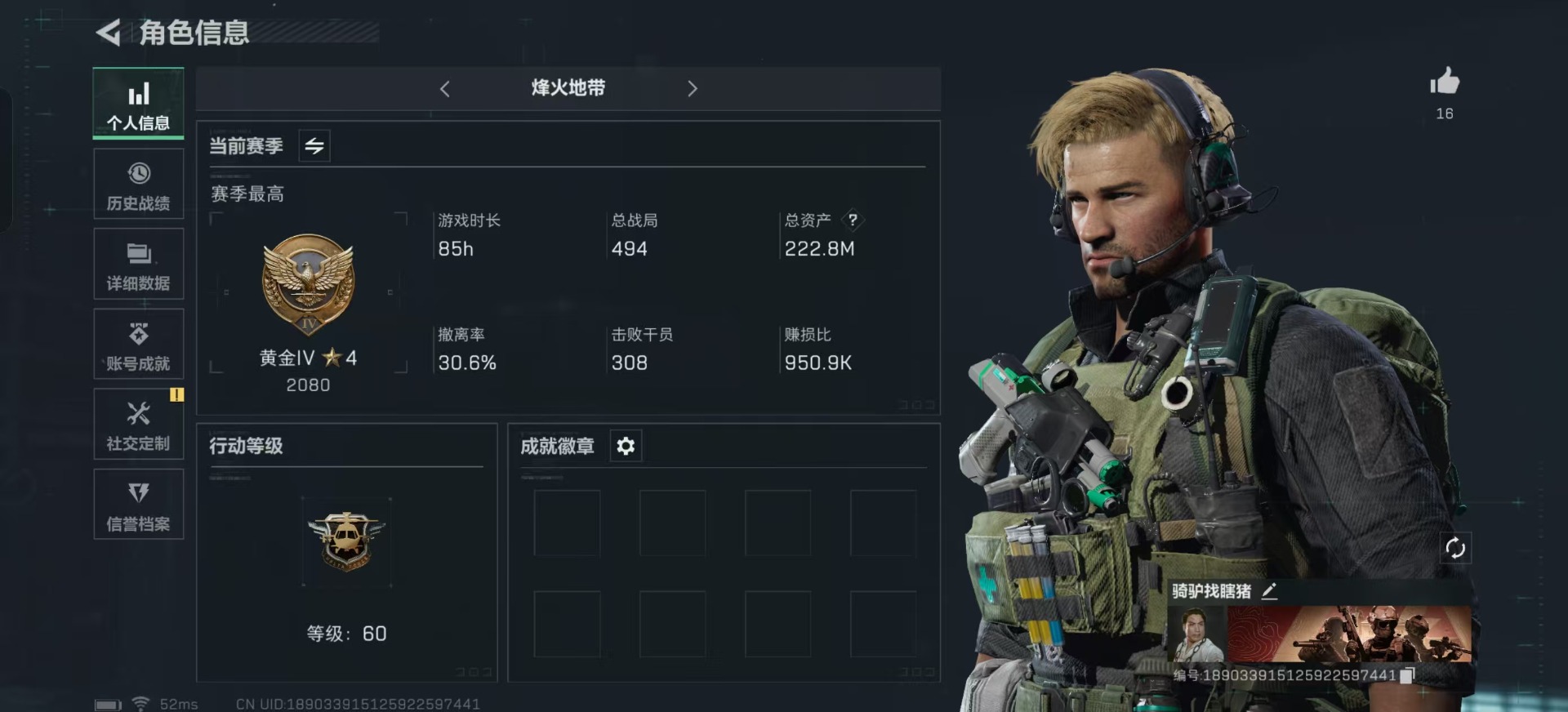 [11554099]可二次 可修改实名 实名:可修改 顶级安全箱(9.17到期) 烽火地带段位:黄金 全面战场段位:列兵 总资产:222.8 哈夫币:21.193 传说武器皮肤:复合弓-黑-天际线,725双管霰弹枪-送葬人-无题密令