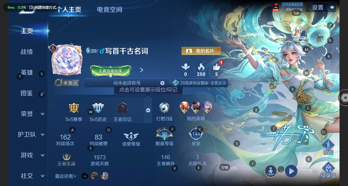 - PX_2023139-贵族等级: V5 英雄数: 53 皮肤数: 28 传说皮: 久胜战神,挚爱之约