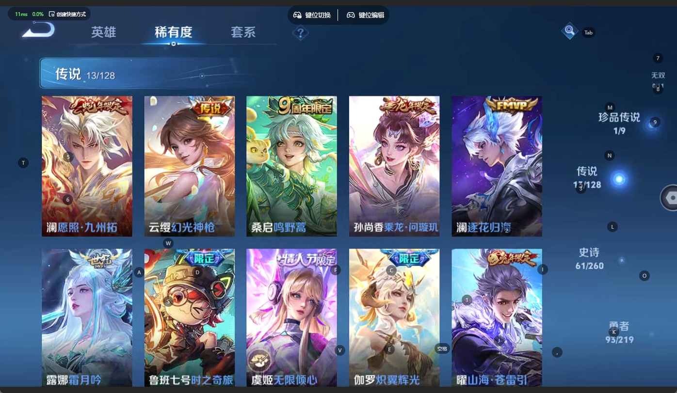 - [11601399]V6 2传说 100英雄 114皮肤 可修改实名 优质装备:绛天战甲(鸡嘴战神) 限定皮:逐霄战戟,影龙天霄 史诗皮:鸭鸭历险记-刘禅,化蝶舞,雪豹·霜爪,石田雨龙,紫霞仙子,苍穹之光,电玩小子(小书包),匿光侦查者,乱世虎臣,水果甜心,暗隐猎兽者,鬼剑武藏,心灵战警,拒霜思,水晶猎龙者,圣诞狂欢,鹰眼统帅,魅力维加斯,赏金猎手