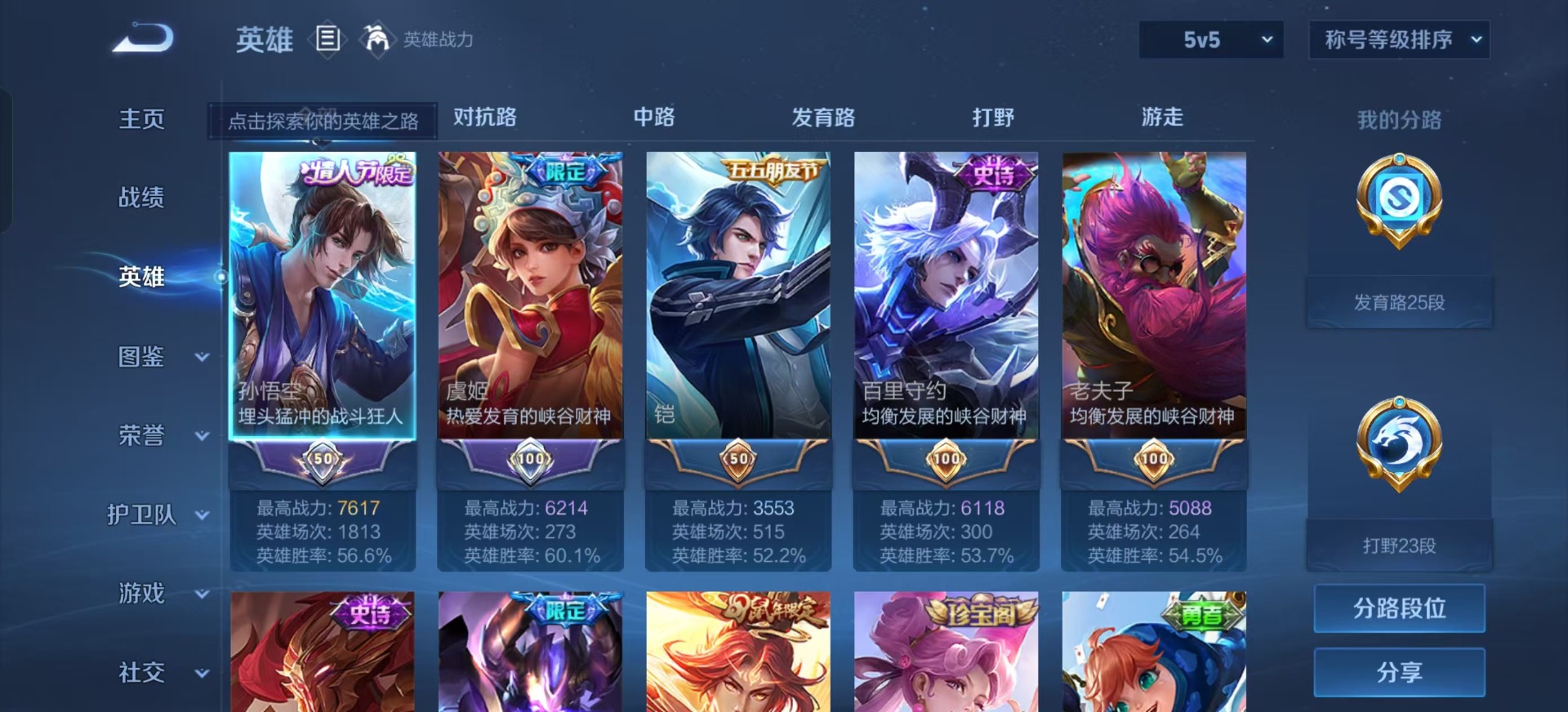 - PX_2084946-贵族等级: V4 英雄数: 89 皮肤数: 65 传说皮: 山海·炽霜斩 限定皮: 孙行者,五谷丰年,鸣野蒿