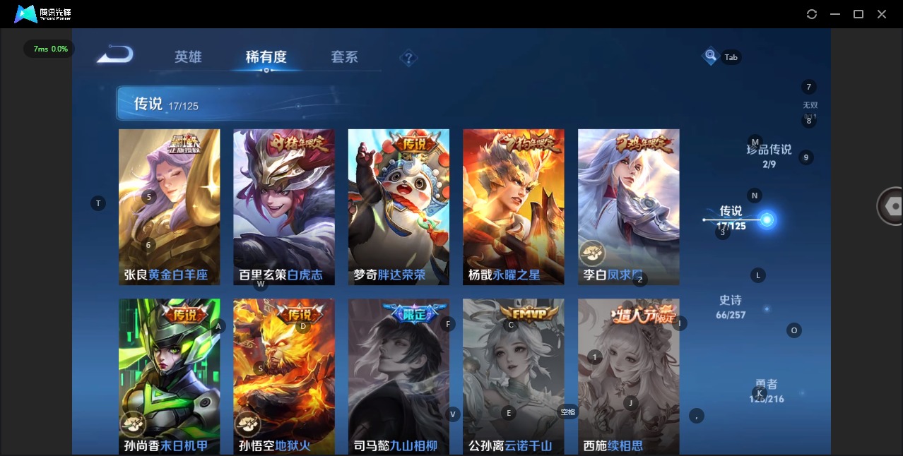[11554200]V8 2珍品传说 17传说 125英雄 267皮肤 可修改实名 珍品传说:怪盗基德,时之奇旅-孙策 传说皮:幻光神枪,黄金白羊座,地狱火,末日机甲-孙尚香(绿蚂蚱),一念神魔,胖达荣荣,妄想实况 珍宝阁皮:妄想食味 限定皮:愿照·九州拓(澜年限),鸣野蒿,白虎志(电光耗子),凤求凰(白切鸡),太华(伽罗年限),傲雪梅枪,飞衡(韩信年限),瑞麟志(木兰年限),影龙天霄,遇见飞天,诗剑行,五谷丰年,冰锋战神,游园惊梦,梁祝,天狼征服者,祈雪灵祝(雪兔子),李小龙,永曜之星,辉光之辰,霸王别姬-虞姬,一生所爱,大圣娶亲,引擎之心,青春决赛季,冰霜恋舞曲,寅虎·御盾(廉颇年限) 史诗皮:星界战将,茶境仙,绮世丹青,龙之律动,石田雨龙,琥珀纪元伽罗,破空之剑,紫霞仙子,黄金分割率,特工魅影,千年之狐,永昼,魅语,暗夜猫娘,龙骑士(小龙虾),猫狗日记-孙策,乱世虎臣,节奏热浪,修罗,女仆咖啡,水果甜心,绅士熊喵,星夜王子,心灵骇客,功夫厨神,德古拉伯爵,暗隐猎兽者,鬼剑武藏,缤纷独角兽,逐浪之夏,水晶猎龙者,金属风暴,原初追逐者,圣诞狂欢,圣诞恋歌,鹰眼统帅,王者之锤,魅力维加斯,寅虎·御盾