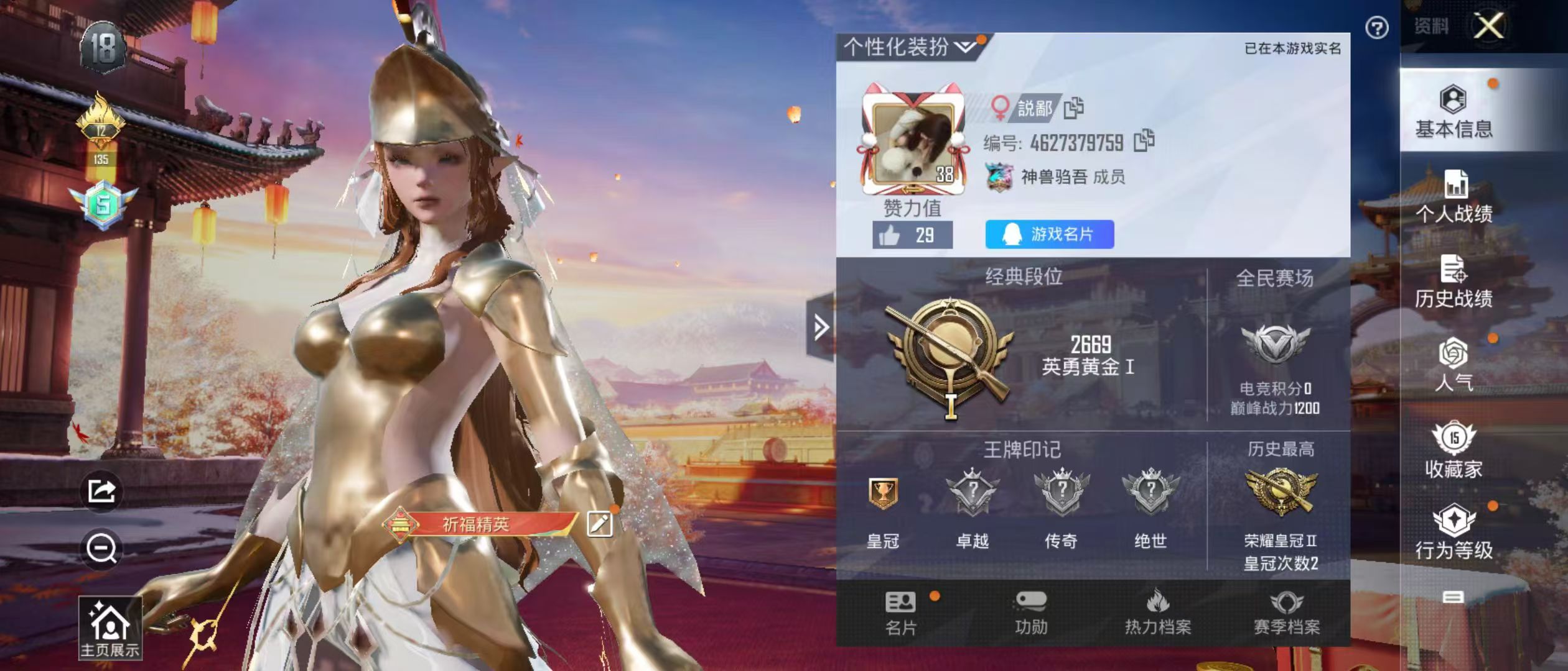 [6700027]实名: 不可修改 时装数: 139 枪械数: 29 战备数: 31 热门装扮: 萨利娅 稀有枪皮: Kar98K-巳巳如意