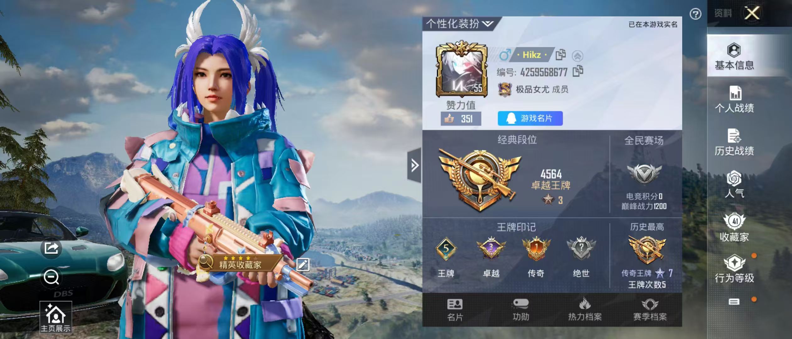 [6468584]实名: 可修改 时装数: 283 载具数: 2 枪械数: 90 战备数: 61 热门装扮: 极致幻想,猩猩队长,茉莉星 载具: 阿斯顿·马丁DBS(绿),宾利BATUR(极速紫) 稀有枪皮: M416心之恋语,GROZA-镜光银凌,Kar98K-巳巳如意,AUG-暖羊咩咩