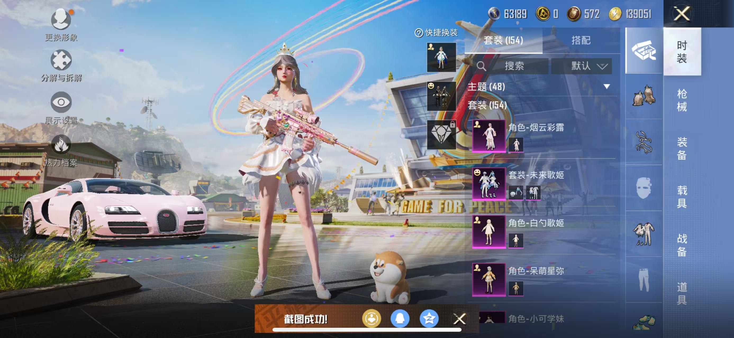 [7850214]实名: 可修改 时装数: 560 载具数: 1 枪械数: 241 战备数: 174 热门装扮: 浪漫波比,洛天依,恐龙拽拽,庄周梦蝶,奶芙汪汪,启明星,暗夜鎏金,小可学妹,白勺歌姬,呆萌星弥,未来歌姬,烟云彩露 载具: 布加迪威龙(星云粉) 稀有枪皮: M416五爪金龙,M416心之恋语,SCAR-L青春物语,UMP45恐龙拽拽,UMP45启明星,DP-28暗夜鎏金,MG3梦幻舞会,M24莲影清波,AKM绿萝繁花,M24镜域双华,Kar98K-巳巳如意,AMR-智耀战神