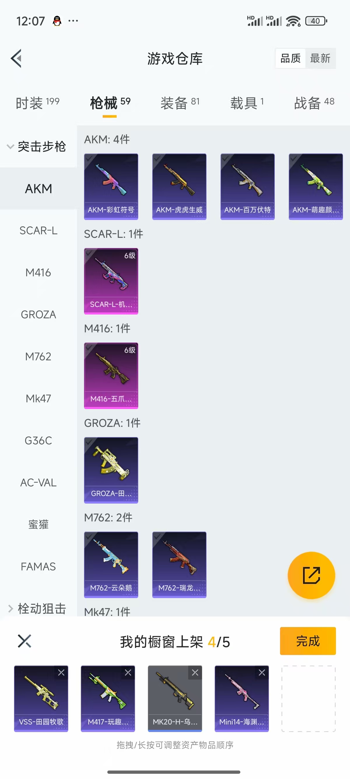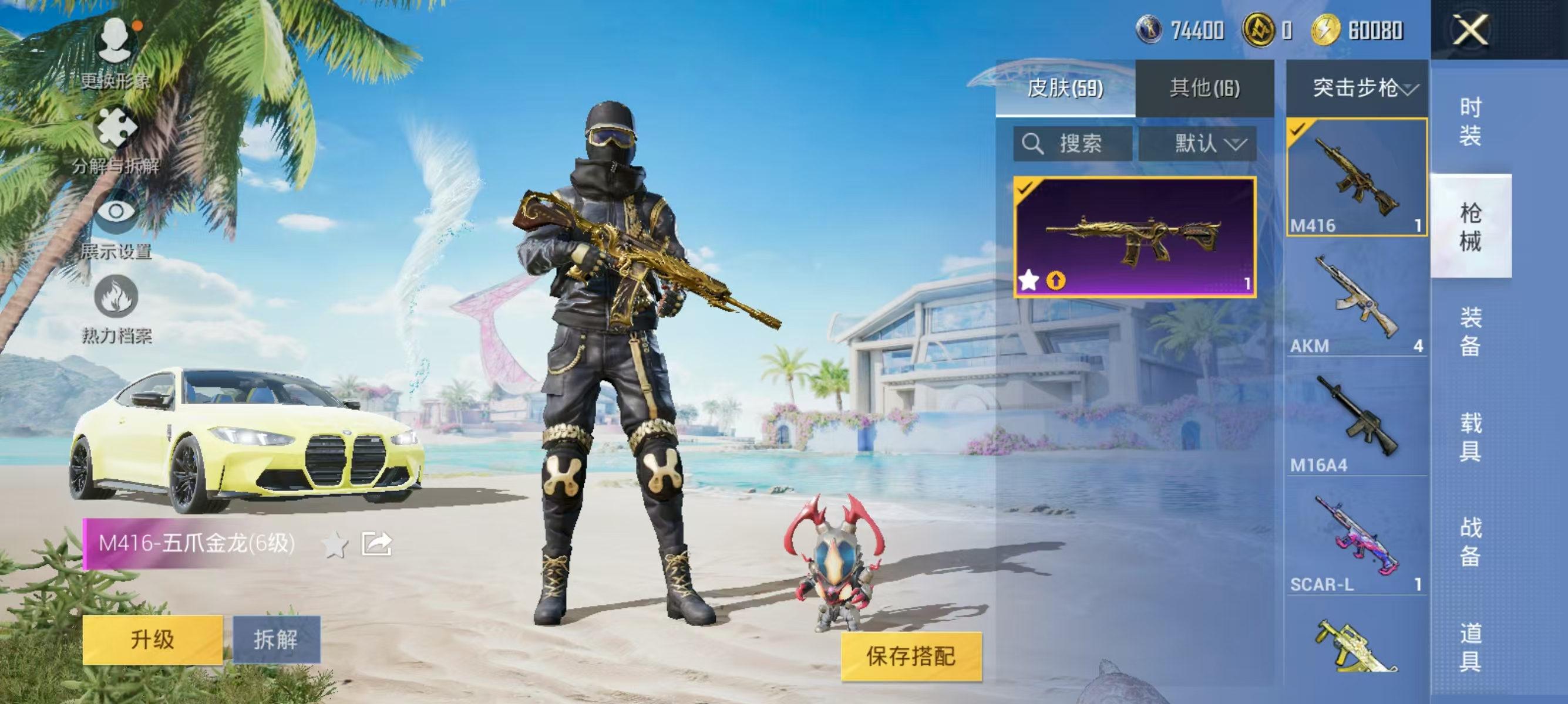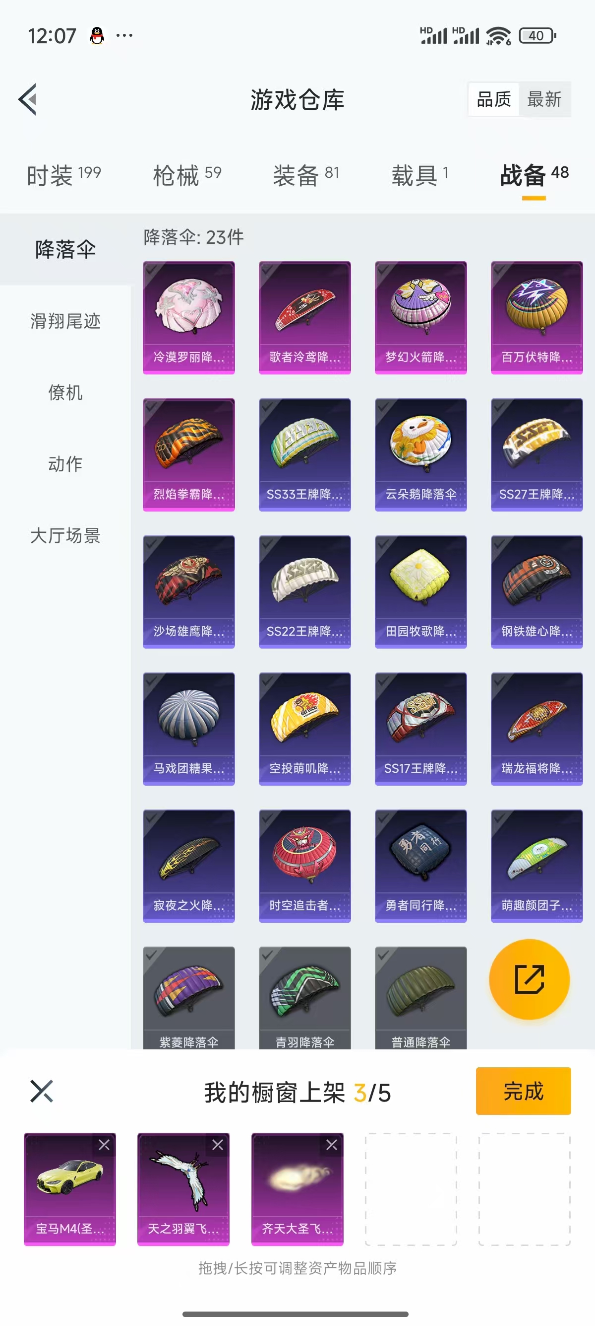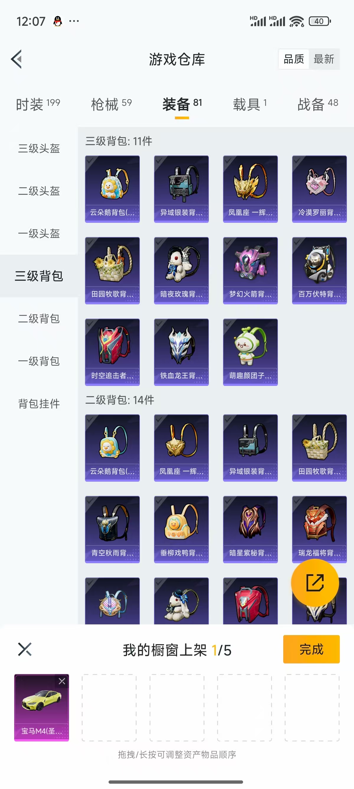 [9626962]实名: 不可修改 时装数: 202 载具数: 1 枪械数: 59 战备数: 48 热门装扮: 新星烈龙,铁血龙王,碧影闪光 载具: 宝马M4(圣保罗黄) 稀有枪皮: M416五爪金龙,SCAR-L机甲封神