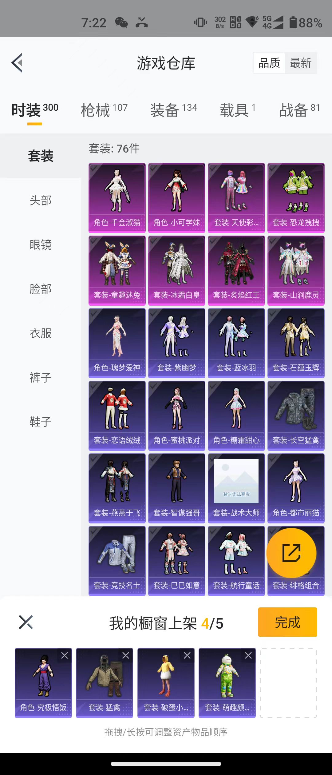 [8430699]实名: 可修改 时装数: 300 载具数: 1 枪械数: 107 战备数: 81 热门装扮: 天使彩虹糖,炙焰红王,冰霜白皇,童趣迷兔,山涧鹿灵,恐龙拽拽,小可学妹,千金淑猫 载具: 萌喵橘座 稀有枪皮: AKM梦之光华,Kar98K-巳巳如意,MK14-樱桃泡泡