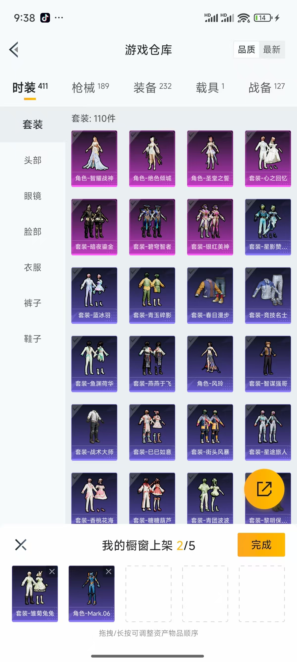 [9770167]实名: 可修改 时装数: 414 载具数: 1 枪械数: 189 战备数: 127 热门装扮: 碧穹智者,银红美神,暗夜鎏金,心之回忆,绿野极光,圣堂之誓,绝色倾城,智耀战神 载具: 玛莎拉蒂Quattroporte(夜幕蓝) 稀有枪皮: AKM星际浪客,SCAR-L纯梦嫁纱,Kar98K未来歌姬,P90能量风暴,DP-28-千金淑猫,Kar98K-巳巳如意,AUG-圣斗士星矢