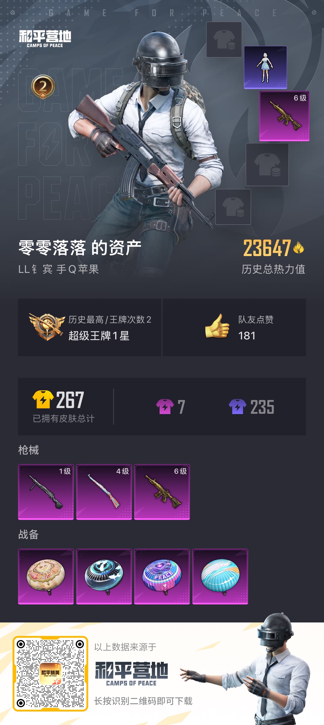 [10563770]实名: 不可修改 时装数: 215 枪械数: 86 战备数: 55 稀有枪皮: M416五爪金龙,Kar98K-巳巳如意