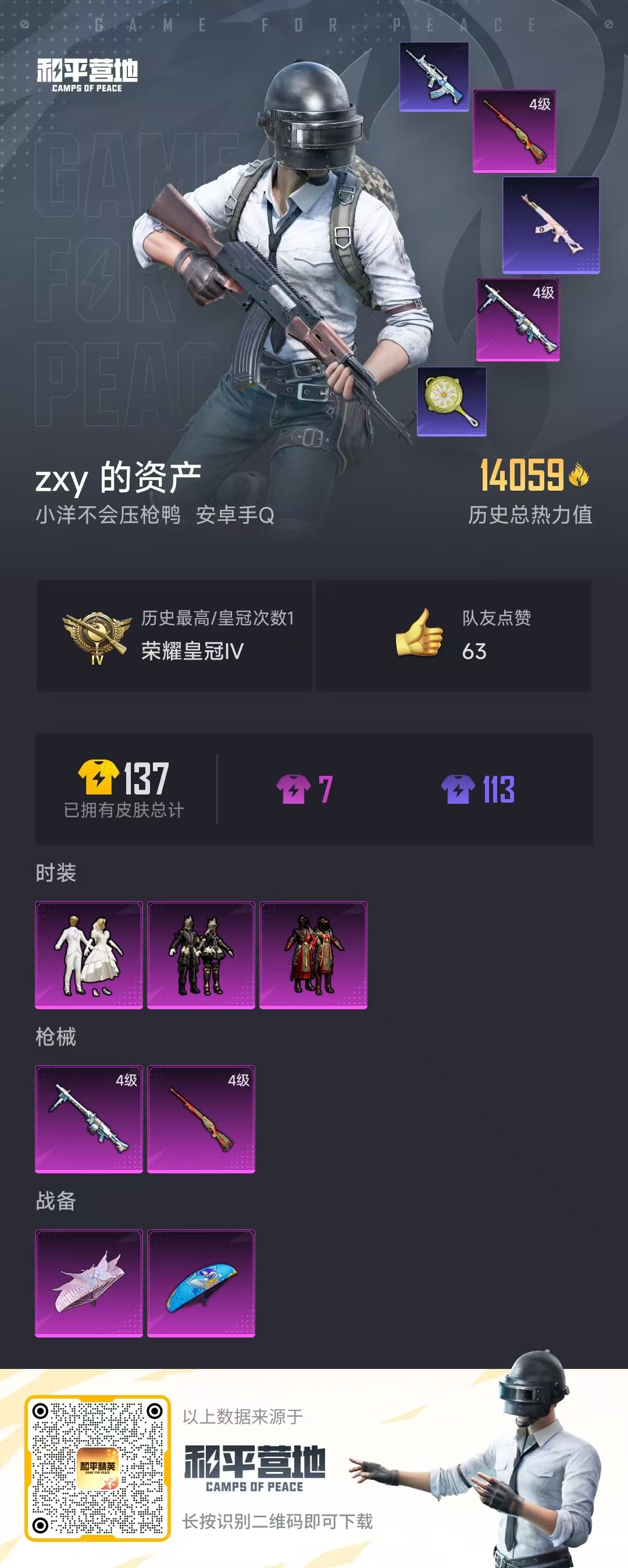 - PX_2091725- 苹果手Q-8王牌印记-5粉装-4特效枪-1载具-58750热力值-131套装-191枪皮-4卓越印记-1传奇印记 【5粉装】,宝贝奶油派,水曜玄武,闲梦青缨,圣堂之誓,烟云彩露 【4特效枪】AKM-盖世英雄-9级 M416-心之恋语-5级 DP-28-圣堂之誓-1级 MG3-酷泡奶龙-4级 【2稀有紫装】,雪山精英,龟仙人, 【1稀有载具】,宾利BATTUR(极速紫),