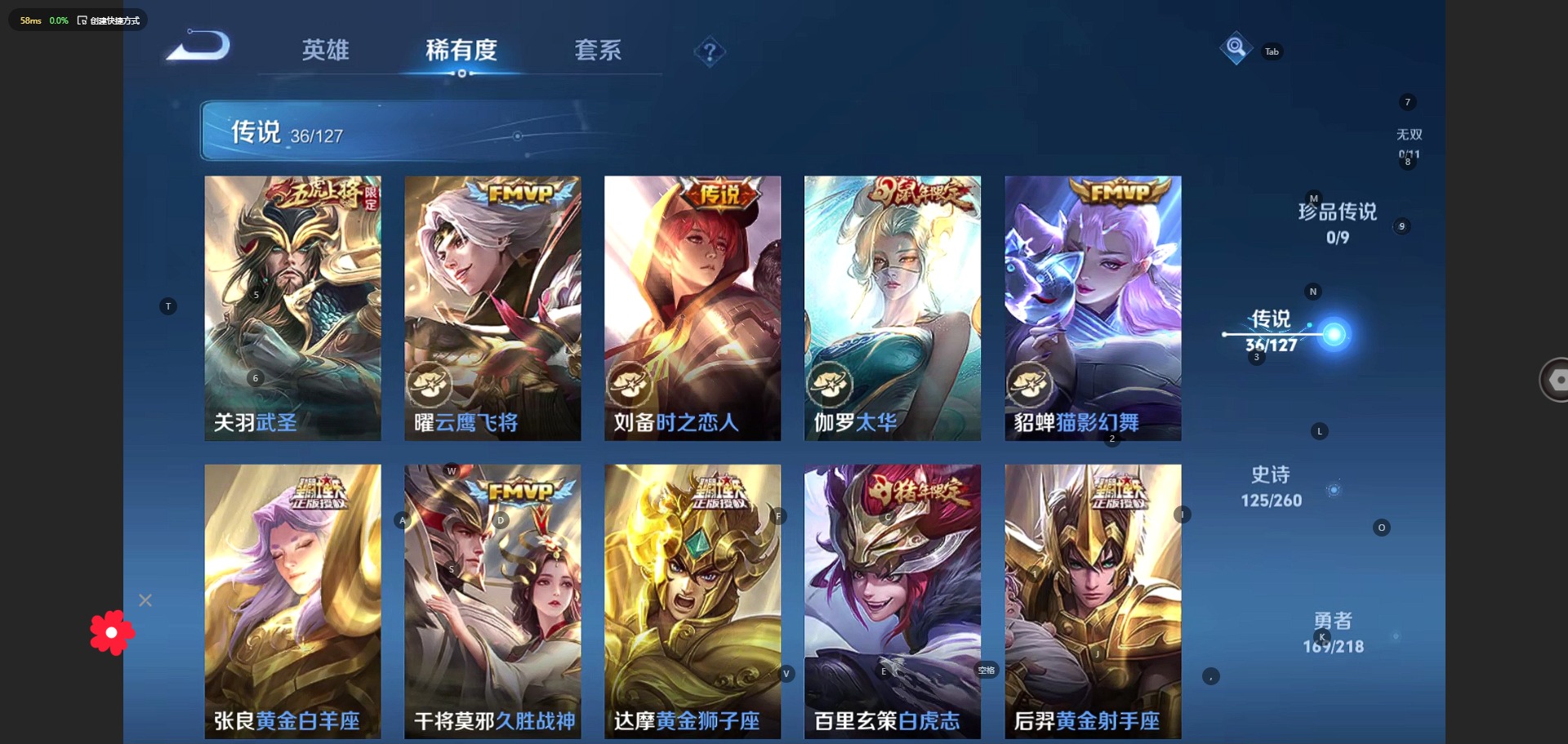 - PX_2077842-贵族6/皮肤154/传说4/史诗41/英雄123/蔷薇恋人/特工战影/地狱火/云鹰飞将/战鼓燎原/云缨幻光神枪/姜子牙天穹之誓/狄仁杰阴阳师/赵云皇家上将/蔷薇恋人/狮舞东方/白起夜都怪侠/芈月幻夜卜梦/朔风刀/女儿国国王/烛龙/山海玄木吟/狄仁杰魔术师/万华元夜/沙漠行僧/项羽海滩派对/傲雪梅枪/金庭之子/孙行者/御旌/云中旅人/神迹守卫钟馗/驱傩正仪/杨玉环遇见飞天/黄忠