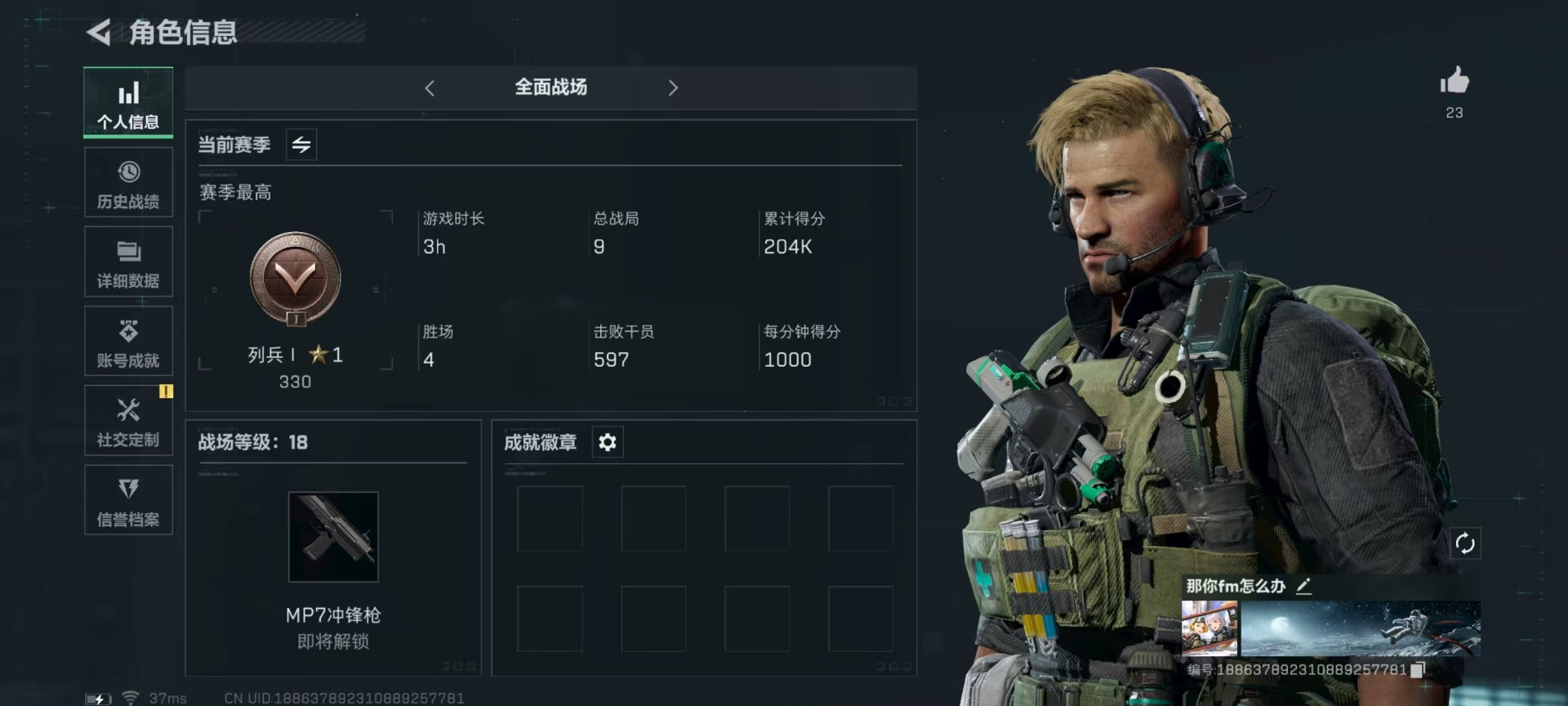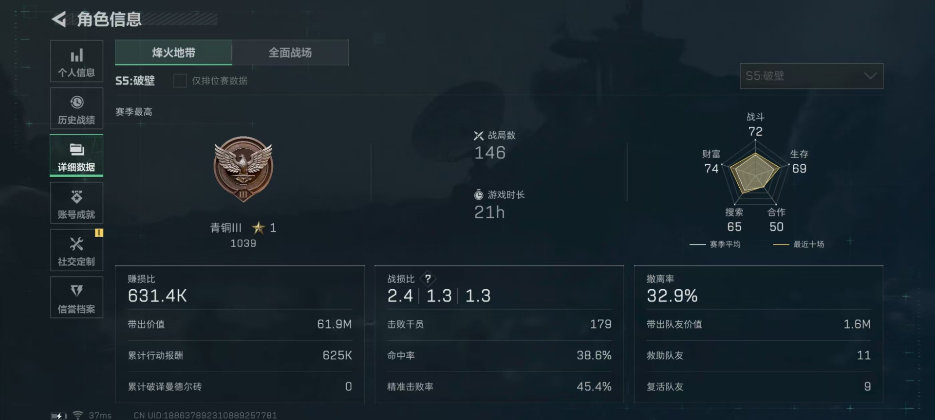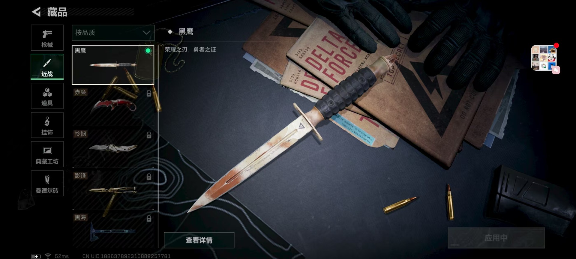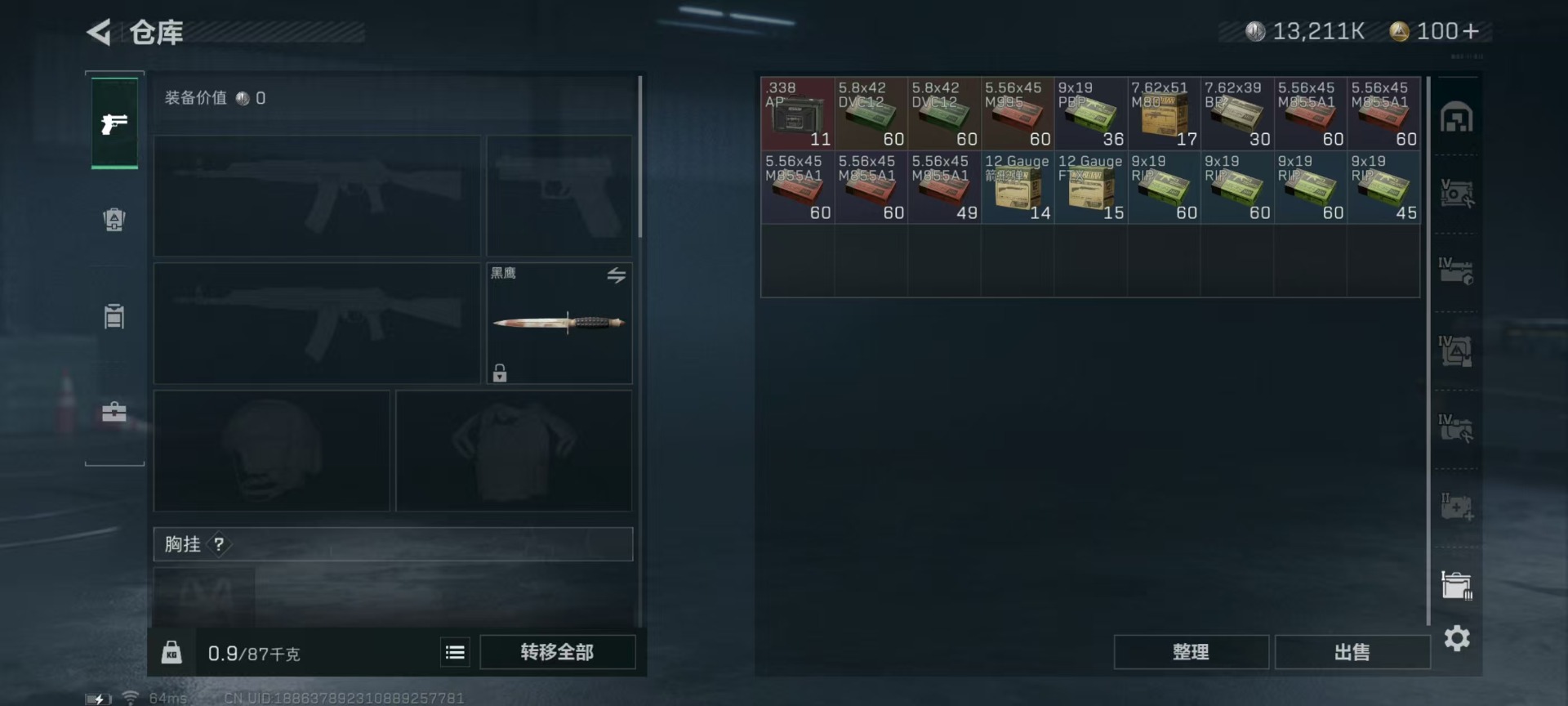 - [11516624]总资产:91.9M 1干员外观 9传说枪械 哈夫币:47.791K 高级安全箱(9.17到期) 可二次 可修改实名 优质装备:K416突击步枪-命运(典藏) 烽火地带段位:铂金 全面战场段位:军士长 传说武器皮肤:M4A1突击步枪-阿米娅,CAR-15突击步枪-阿米娅,复合弓-黑-天际线,AK-12突击步枪-特斯拉线圈,SR-3M紧凑突击步枪-特斯拉线圈,UZI冲锋枪-特斯拉线圈,勇士冲锋枪-能天使-午夜邮差,725双管霰弹枪-送葬人-无题密令 干员外观:蜂医-送葬人·无题密令(S5)