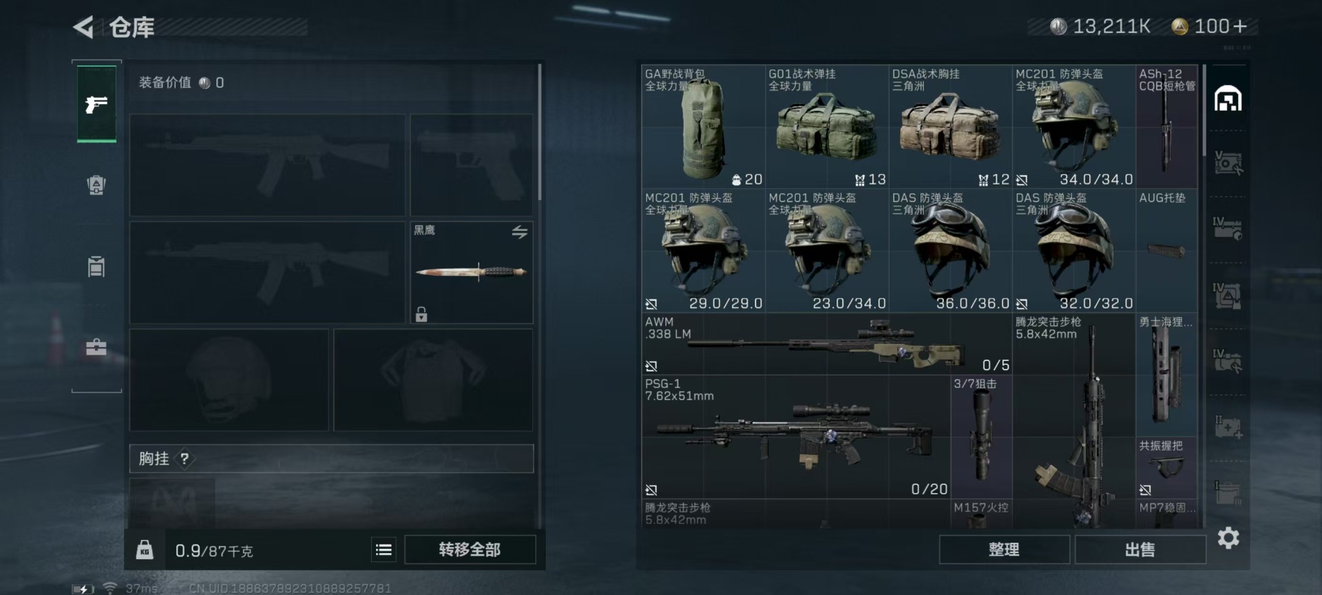 [11567789]总资产:102.1M 4传说枪械 哈夫币:13.211K 高级安全箱(9.16到期) 可二次 可修改实名 烽火地带段位:青铜 全面战场段位:列兵 传说武器皮肤:勇士冲锋枪-能天使-午夜邮差,复合弓-黑-天际线,725双管霰弹枪-送葬人-无题密令,M4A1突击步枪-阿米娅