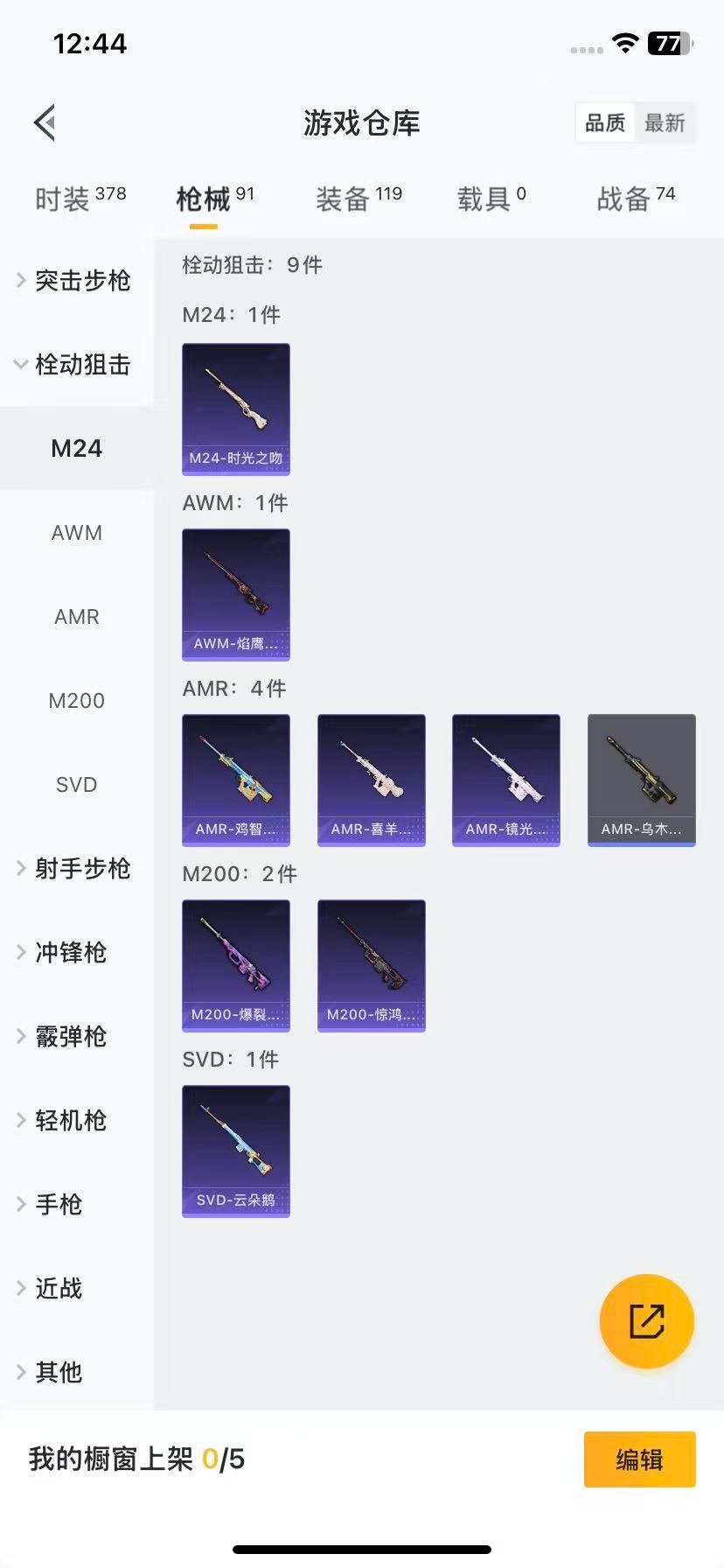 - [11605432]总资产:9 1近战传说 5传说枪械 高级安全箱(9.17到期) 可二次 可修改实名 烽火地带段位:钻石 全面战场段位:列兵 哈夫币:0 传说武器皮肤:近战-黑海,SMG45冲锋枪-骑士,QJB201轻机枪-黑海,复合弓-黑-天际线,M4A1突击步枪-蚀金玫瑰 史诗武器皮肤:QBZ95-1突击步枪-ACE,M4A1突击步枪-特勤执行,SKS射手步枪-ACE,PKM通用机枪-蝮蛇,PKM通用机枪-荒野求生,M700狙击步枪-守夜人,MP5冲锋枪-深海恐惧,勇士冲锋枪-深海恐惧,AKM突击步枪-林中猎手,SVD狙击步枪-暗夜猎手,M1014霰弹枪-林中猎手,PSG-1射手步枪-无垢,SV-98狙击步枪-囚徒,QBZ95-1突击步枪-曙光,沙漠之鹰-曙光,M700狙击步枪-竞技风