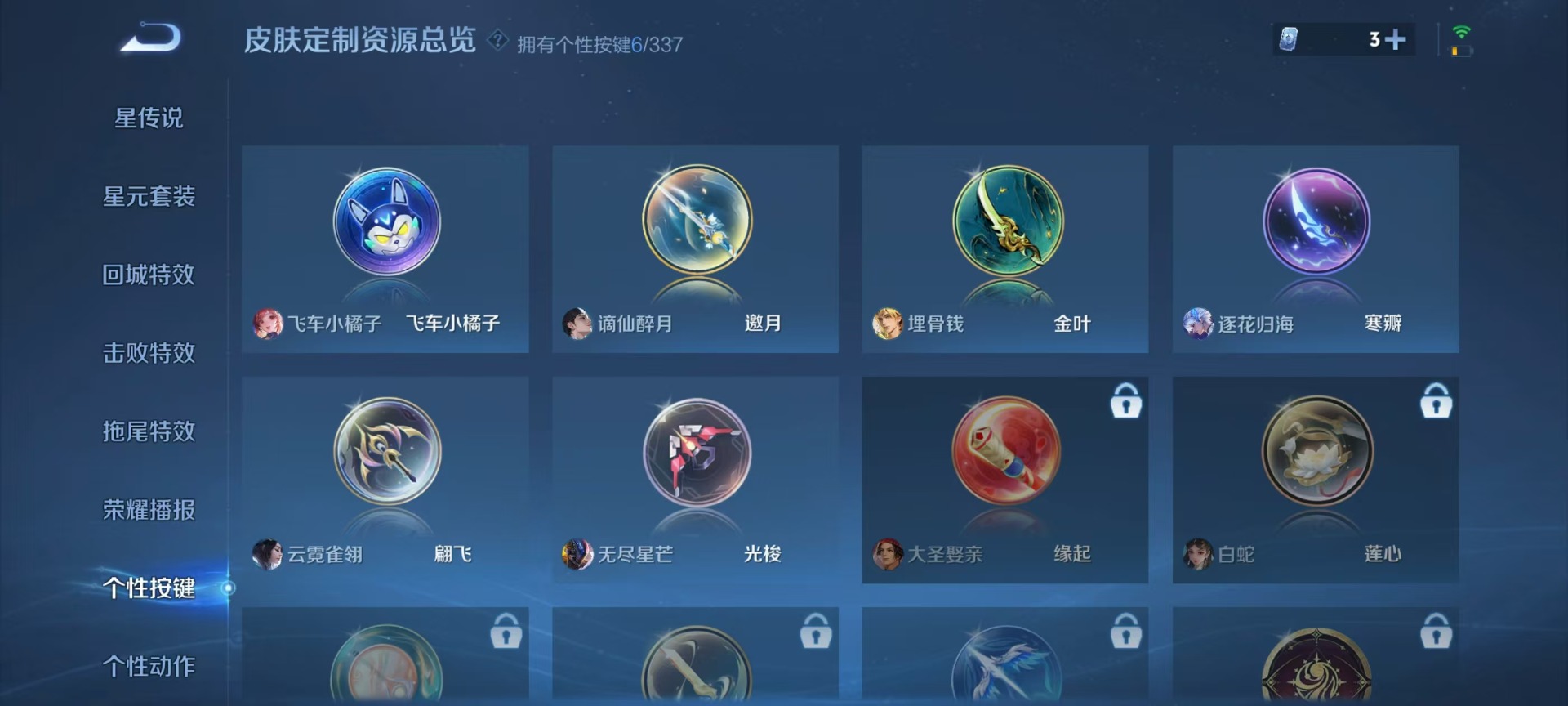 大乔猫狗日记,宫本武藏鬼剑武藏,兰陵王暗隐猎兽者,貂蝉圣诞恋歌,夏侯惇乘风破浪,李白谪仙醉月,花木兰水晶猎龙者,李白千年之狐,蒙犽百解令,铠曙光守护者,廉颇地狱岩魂,伽罗箭羽风息,孙尚香时之恋人,孙策猫狗日记,赵怀真器灵·浮梦炉,李元芳逐浪之夏,百里守约特工魅影,墨子龙骑士,吕布末日机甲,露娜紫霞仙子,澜赏金猎手,嫦娥拒霜思,钟馗乐园奇幻夜,刘禅天才门将,姬小满飞车小橘子