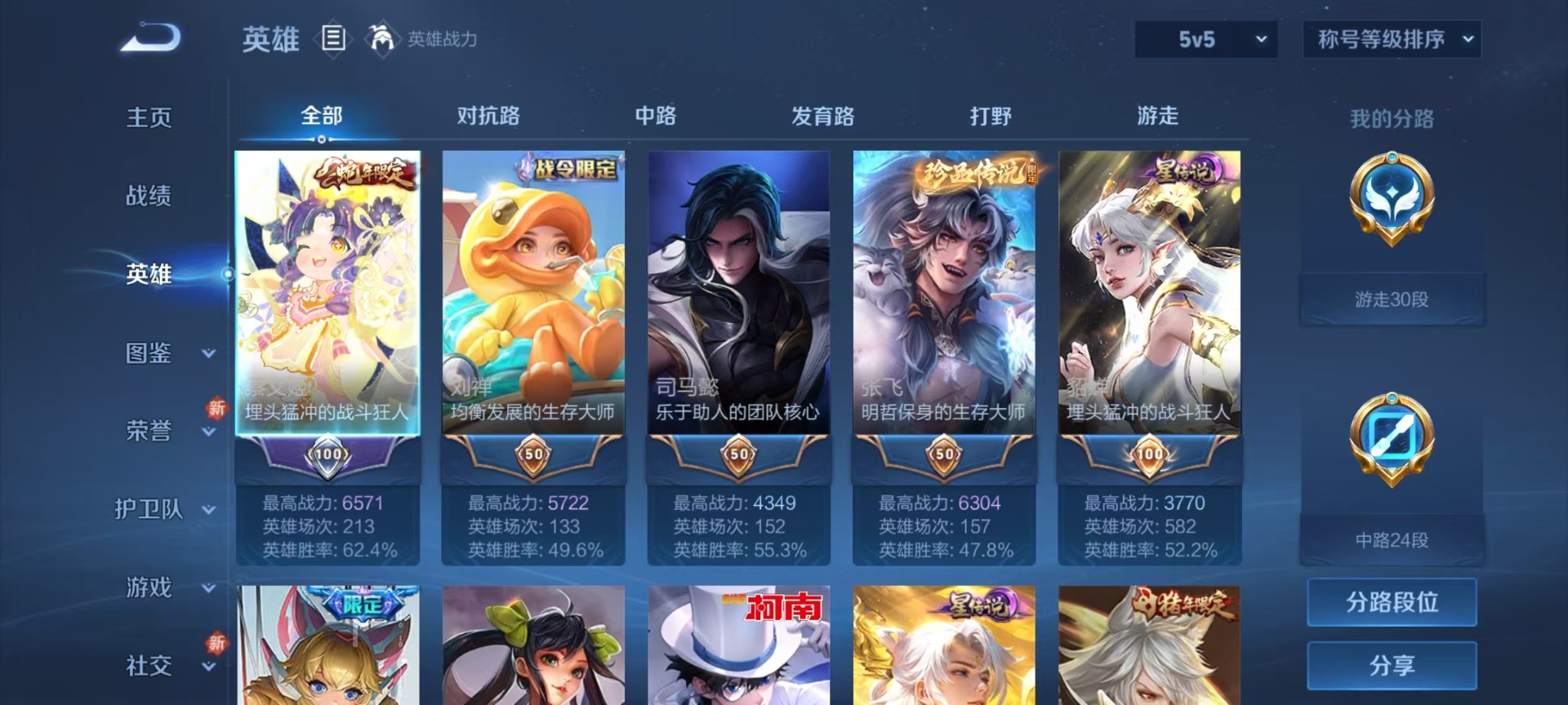 - PX_2073415-贵族等级: V6 英雄数: 123 皮肤数: 153 星传说: 未来机甲,星际治安官 传说皮: 末日机甲-孙尚香,超时空战士-狄仁杰 限定皮: 李小龙,朱雀志,五谷丰年,山海·玄木吟 亮点: 【店长推荐精品号】热门限定皮朱雀志山海玄木吟 星传说未来机甲星际治安官 100+玫瑰 低于万场练手号