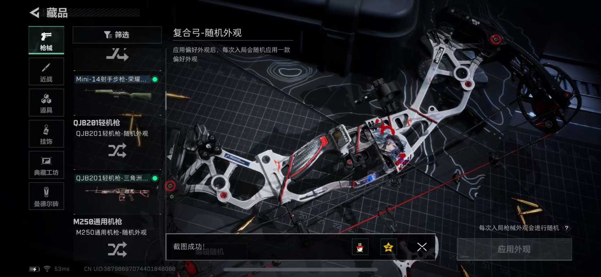 [11571866]总资产:128.8 1传说枪械 顶级安全箱(3X3)9.15号到期 烽火地带段位:钻石 全面战场段位:无段位 哈夫币:3.7 传说武器皮肤:复合弓-黑-天际线 史诗武器皮肤:M1014霰弹枪-林中猎手,SV-98狙击步枪-林中猎手,S12K霰弹枪-曙光