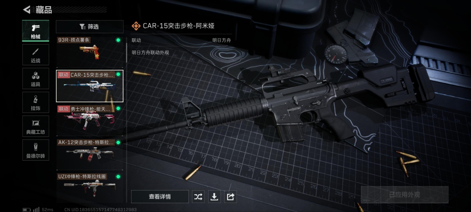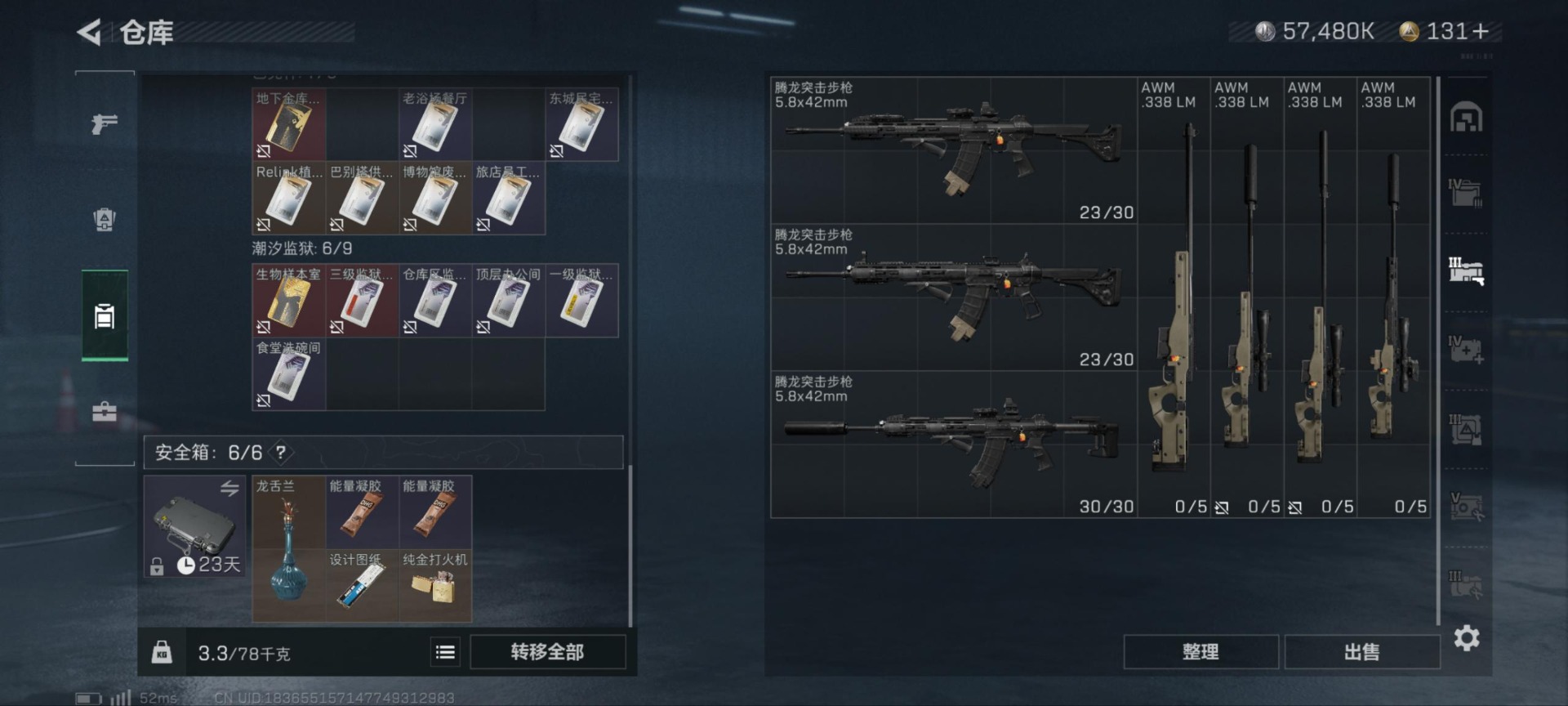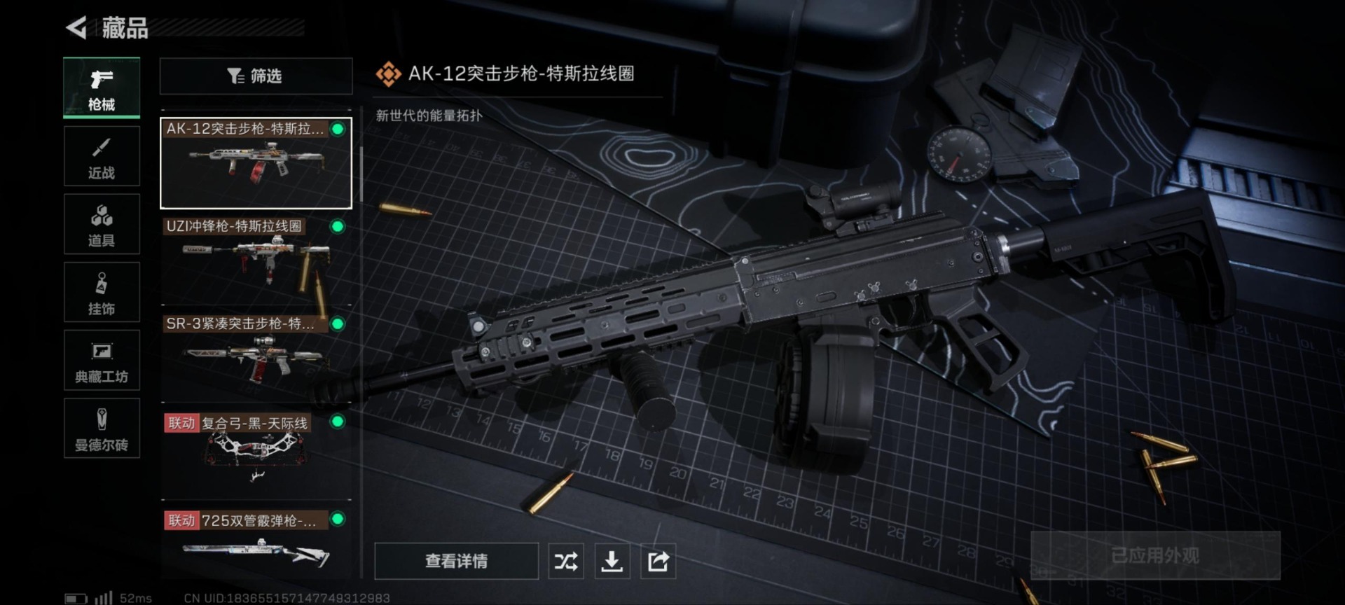 - [11713367]总资产:196.5M 1干员外观 9传说枪械 哈夫币:86.634K 顶级安全箱(3×3)9.15号到期 可二次 可修改实名 优质装备:顶级安全箱(3x3) 烽火地带段位:黑鹰 全面战场段位:无段位 传说武器皮肤:UZI冲锋枪-特斯拉线圈,AWM狙击步枪-捞点薯条,腾龙突击步枪-捞点薯条,93R-捞点薯条,AK-12突击步枪-特斯拉线圈,SR-3M紧凑突击步枪-特斯拉线圈,勇士冲锋枪-能天使-午夜邮差,复合弓-黑-天际线,725双管霰弹枪-送葬人-无题密令 干员外观:露娜-黑·天际线
