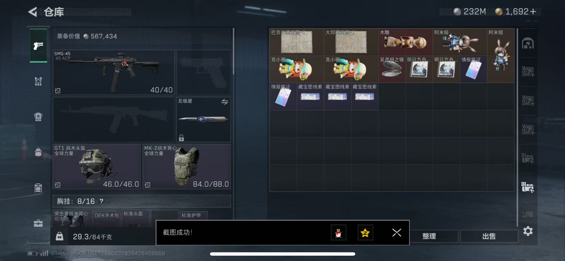 [11527216]总资产:668.2M 2干员外观 2近战传说 16传说枪械 哈夫币:232K 高级安全箱(2×3)9.15号到期 可二次 可修改实名 优质装备:近战-黑海,近战-北极星 烽火地带段位:钻石 全面战场段位:上等兵 传说武器皮肤:SR-25射手步枪-水墨云图,G18-飞虎,SMG45冲锋枪-骑士,M16A4突击步枪-狩猎时刻,复合弓-黑-天际线,Vector冲锋枪-狩猎时刻,G3战斗步枪-狩猎时刻,QCQ171冲锋枪-北极星,勇士冲锋枪-能天使-午夜邮差,725双管霰弹枪-送葬人-无题密令,K437突击步枪-北极星,MP5冲锋枪-黑海,QJB201轻机枪-黑海,P90冲锋枪-神秘艺术 干员外观:红狼-蚀金玫瑰,骇爪-水墨云图