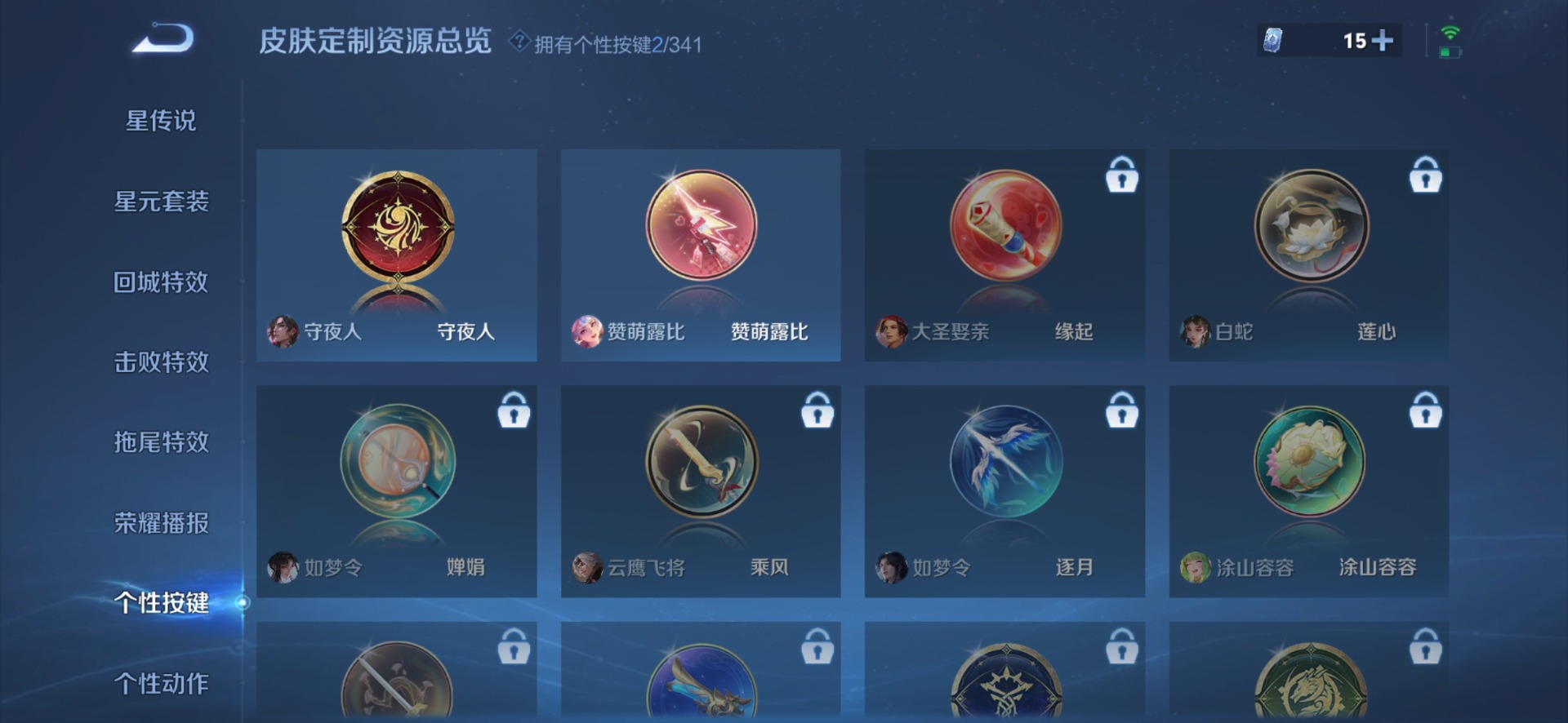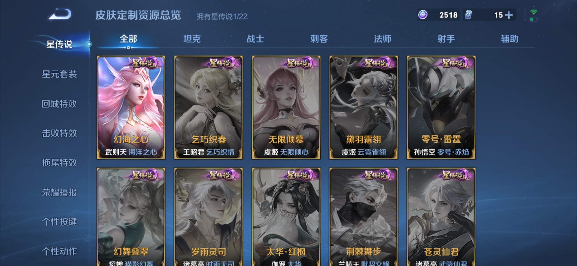 铠青龙志,干将莫邪冰霜恋舞曲,后羿如梦令,露娜一生所爱,公孙离蜜橘之夏,裴擒虎李小龙,裴擒虎天狼狩猎者,东皇太一逐梦之光,花木兰青春决赛季,孙悟空大圣娶亲,孙悟空至尊宝,马超神威,关羽冰锋战神