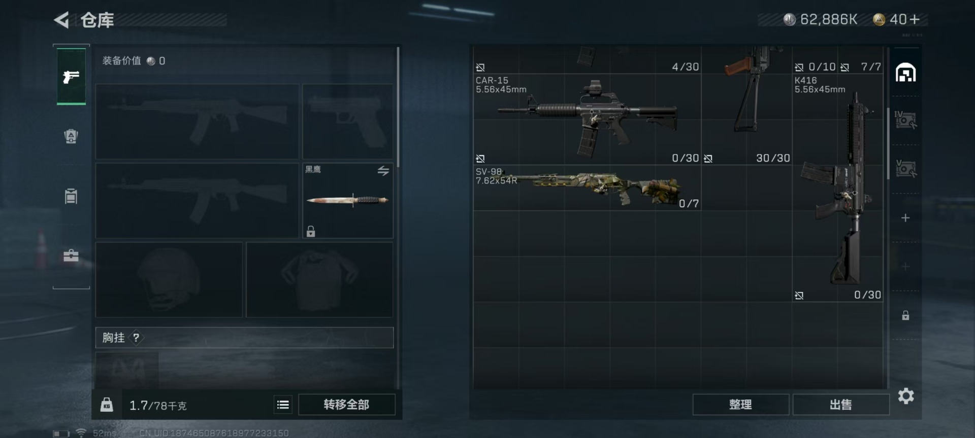 [11574730]总资产:82M 8传说枪械 哈夫币:62.886K 进阶安全箱(9.16到期) 可二次 可修改实名 烽火地带段位:青铜 全面战场段位:无段位 传说武器皮肤:UZI冲锋枪-特斯拉线圈,AK-12突击步枪-特斯拉线圈,SR-3M紧凑突击步枪-特斯拉线圈,勇士冲锋枪-能天使-午夜邮差,Vector冲锋枪-能天使-午夜邮差,复合弓-黑-天际线,M4A1突击步枪-阿米娅,CAR-15突击步枪-阿米娅 史诗武器皮肤:QJB201轻机枪-Old Habits,MP5冲锋枪-深海恐惧,SV-98狙击步枪-林中猎手,SVD狙击步枪-阿萨拉工艺
