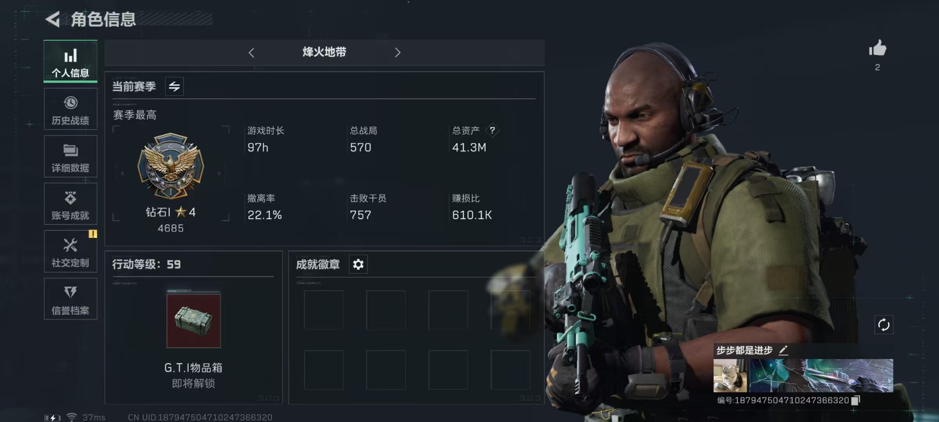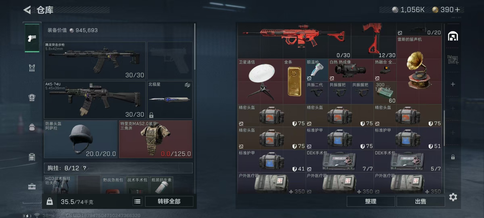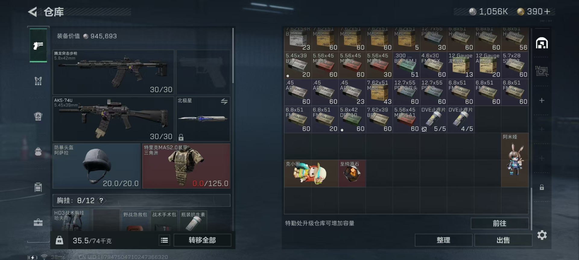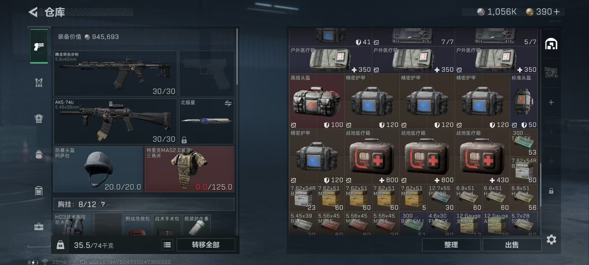 [11574860]总资产:41.3M 1近战传说 12传说枪械 哈夫币:1.056K 高级安全箱(9.16到期) 可二次 可修改实名 优质装备:近战-北极星 烽火地带段位:钻石 全面战场段位:无段位 传说武器皮肤:UZI冲锋枪-特斯拉线圈,AWM狙击步枪-捞点薯条,93R-捞点薯条,AK-12突击步枪-特斯拉线圈,勇士冲锋枪-能天使-午夜邮差,Vector冲锋枪-能天使-午夜邮差,复合弓-黑-天际线,K437突击步枪-北极星,QCQ171冲锋枪-北极星,725双管霰弹枪-送葬人-无题密令,M4A1突击步枪-阿米娅 史诗武器皮肤:QJB201轻机枪-Old Habits,SG552突击步枪-深海恐惧,M16A4突击步枪-竞赛选手,SV-98狙击步枪-林中猎手,SV-98狙击步枪-囚徒,腾龙突击步枪-无垢,MP7冲锋枪-无垢,PSG-1射手步枪-无垢,SVD狙击步枪-荒野求生
