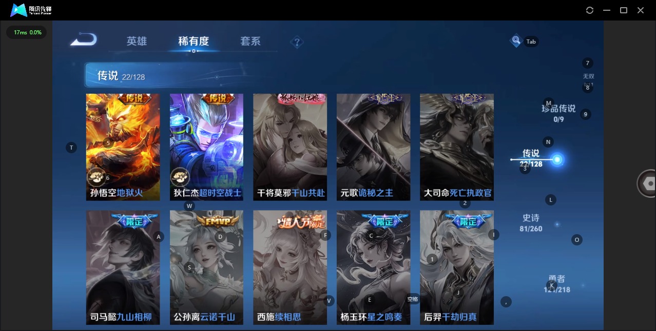 - [11819759]V7 5传说 108英雄 127皮肤 可修改实名 优质装备:地狱火,淬星耀世,超时空战士-狄仁杰,牧神诗旅 限定皮:鸣野蒿,飞衡(韩信年限),冰锋战神,御风骁将(吕布年限),烈魂,逐梦之光,辉光之辰,引擎之心 史诗皮:紫霞仙子,白龙吟,黄金分割率,特工魅影,千年之狐,冰冠公主,修罗,水果甜心,天才门将,德古拉伯爵,暗隐猎兽者,幽灵船长,地狱岩魂,缤纷独角兽,乘风破浪,逐浪之夏,曙光守护者,圣诞恋歌,鹰眼统帅