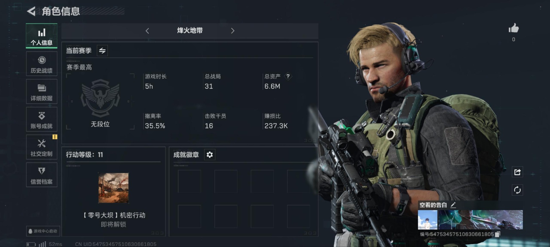 [11553413]总资产:6.6M 1近战传说 4传说枪械 哈夫币:2.214K 可二次 可修改实名 优质装备:近战-北极星 烽火地带段位:无段位 全面战场段位:无段位 传说武器皮肤:勇士冲锋枪-能天使-午夜邮差,K437突击步枪-北极星,QCQ171冲锋枪-北极星
