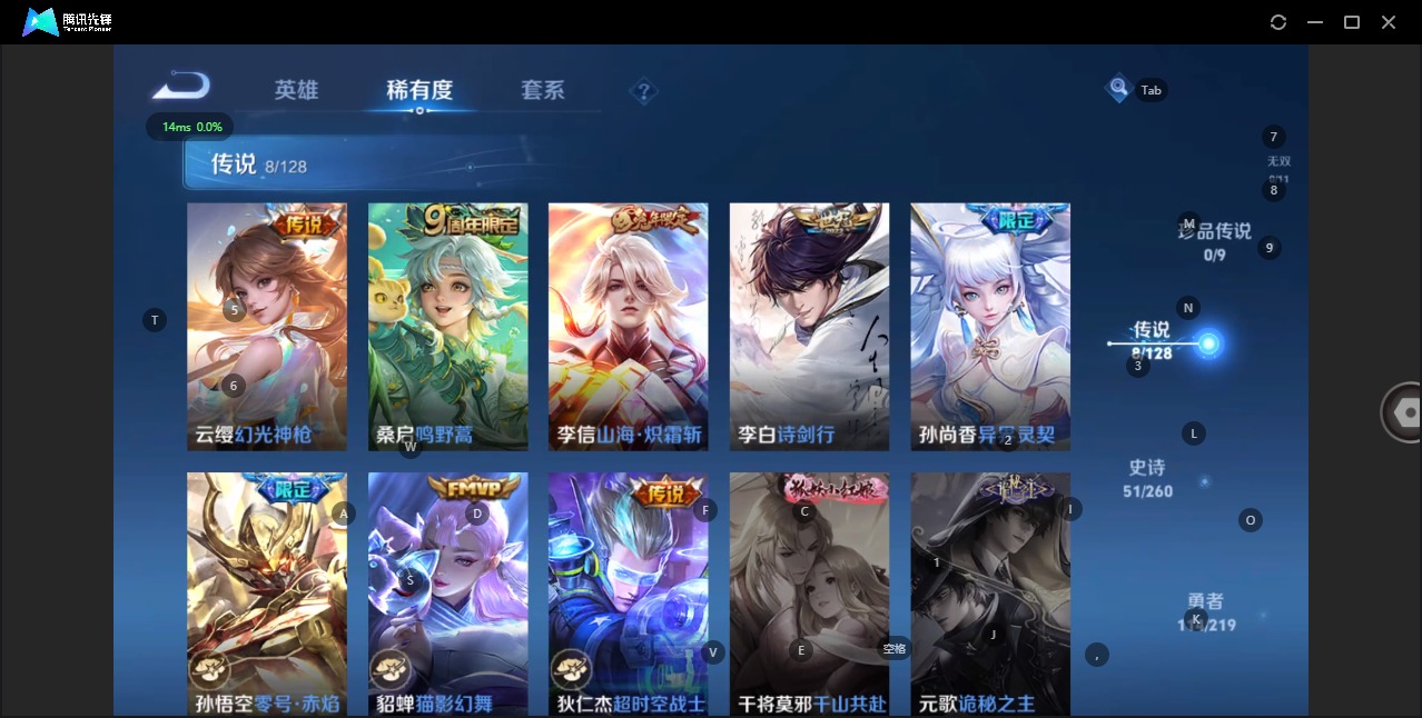 - [11796623]V7 1典藏 7传说 124英雄 337皮肤 可修改实名 优质装备:神鉴启示录,地狱之眼,霜月吟,涂山容容 传说皮:幻光神枪 珍宝阁皮:万物之道,蔷薇恋人,女武神 限定皮:愿照·九州拓(澜年限),逐霄战戟,鸣野蒿,傲雪梅枪,神威(电光马子),遇见飞天,高山流水,怒海麟威,五谷丰年,天狼狩猎者,岱宗(典韦年限),李小龙,猪悟能,大圣娶亲,寅虎·赤拳(老虎年限),神器·万象笔 史诗皮:鸭鸭历险记-刘禅,飞车小橘子,器灵·浮梦炉,化蝶舞,星界战将,谪仙醉月,龙之律动,石田雨龙,百相守梦-周瑜,茶境仙,破空之剑,蔬乡物语(鲁班七号),百相守梦-百里守约,百相守梦-黄忠,遇见神鹿,电玩小子(小书包),黄金分割率,特工魅影,千年之狐,江河有灵,匿光侦查者,魅语,百解令(蒙犽),高渐离燃音魔法,蒙恬荣光圣徽,无限星赏官,冰冠公主,白蛇,晚萤,电玩·爆裂旋风,百相守梦(刘备),末日机甲-吕布,猫狗日记-孙策,猫狗日记-大乔,时之恋人-孙尚香,乱世虎臣,节奏热浪,修罗,女仆咖啡,摇滚巨星,水果甜心,绅士熊喵,天才门将,星夜王子,心灵骇客,功夫厨神,德古拉伯爵,暗隐猎兽者,幽灵船长,鬼剑武藏,心灵战警,舞动绿茵,地狱岩魂,纤云弄巧,繁星吟游(呼啦呼啦),拒霜思,缤纷独角兽,乘风破浪,逐浪之夏,水晶猎龙者,曙光守护者,箭羽风息,唤灵魅影,金属风暴,原初追逐者,圣诞狂欢,圣诞恋歌,鹰眼统帅,暗夜贵公子,魅力维加斯,黎明之约,滕王阁序,无心,未来纪元-赵云