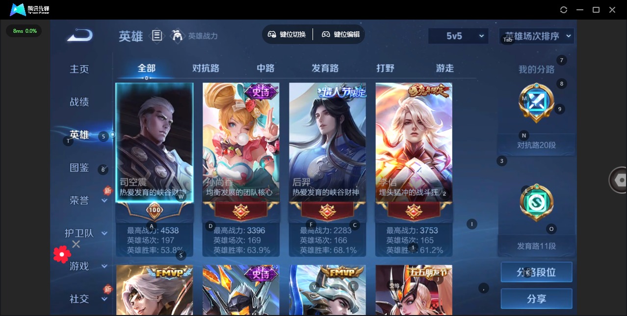 - [11554049]V7 9传说 123英雄 214皮肤 可修改实名 优质装备:云霓雀翎,碎云,鹤羽星尊 传说皮:典韦战鼓燎原,幻光神枪 珍宝阁皮:蔷薇恋人,玩趣恶龙 限定皮:愿照·九州拓(澜年限),愿照·众生和(妲己年限),映山客,鸣野蒿,五谷丰年,李小龙,大圣娶亲 史诗皮:鸭鸭历险记-刘禅,化蝶舞,龙之律动,茶境仙,破空之剑,百相守梦-百里守约,紫霞仙子,苍穹之光,特工魅影,千年之狐,电玩·爆裂旋风,江河有灵,冰冠公主,末日机甲-吕布,时之恋人-孙尚香,乱世虎臣,摇滚巨星,水果甜心,天才门将,星夜王子,心灵骇客,功夫厨神,德古拉伯爵,鬼剑武藏,舞动绿茵,地狱岩魂,繁星吟游(呼啦呼啦),逐浪之夏,曙光守护者,金属风暴,原初追逐者,圣诞恋歌,鹰眼统帅,王者之锤,魅力维加斯,黎明之约,无心,未来纪元-赵云