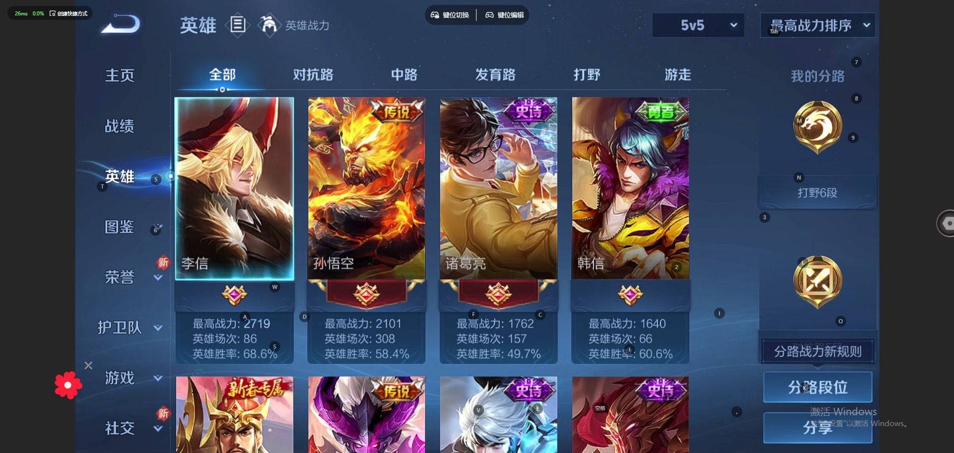- PX_2094396- 可二次 V9 贵族积分 苹果QQ/323皮肤/124英雄/3典藏/0珍品无双/0无双/0珍品传说/35传说/105史诗/8稀有英雄 发育路52段 历史(省标 莱西奥 艾琳 黄忠 ) 【2 星传说皮肤】,未来机甲 孙尚香,时之愿境 瑶, 【3 典藏皮肤】,鸣剑·曳影 李白,星空梦想 鲁班七号,最初的交响 伽罗, 【35 传说皮肤】,胖达荣荣 梦奇,永恒水手月亮 王昭君,启明星