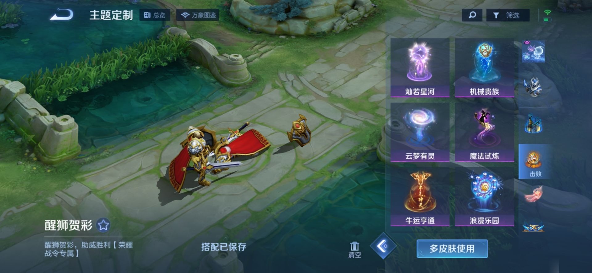 刘邦夺宝奇兵,夏侯惇朔风刀,老夫子醍醐杖,沈梦溪星空之诺,盾山御銮,曹操烛龙,苏烈千军破阵,典韦穷奇,典韦蓝屏警告,达摩沙漠行僧,牛魔御旌,鲁班七号狮舞东方,元歌云间偶戏,兰陵王金庭之子,明世隐疑决卦,蒙犽狂想玩偶喵,鬼谷子原初探秘者,女娲朔望之晖,狄仁杰万华元夜,程咬金演武夺筹,李元芳银河之约,弈星混沌棋,米莱狄御霄,钟馗神迹守卫,钟馗驱傩正仪,狂铁御狮