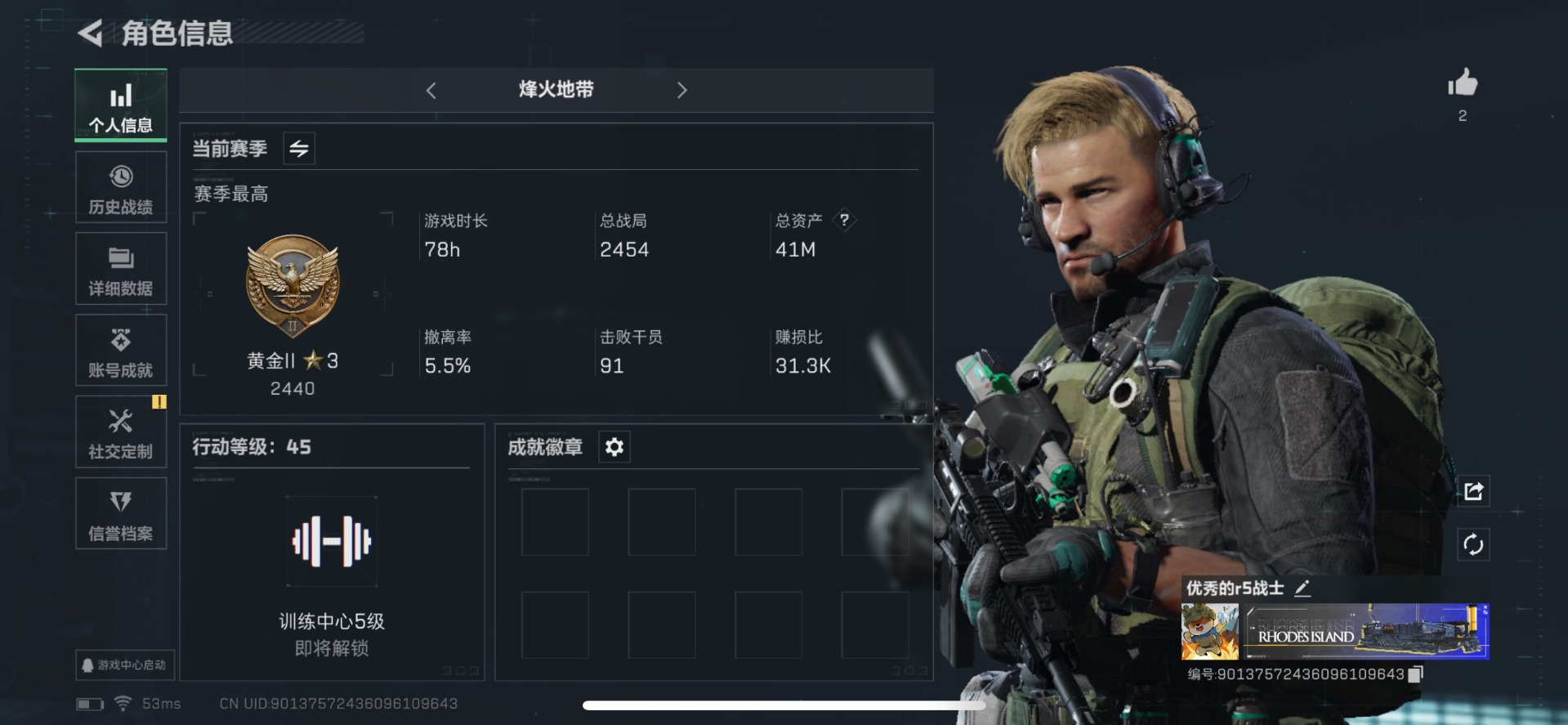 [11577512]总资产:41M 1传说枪械 哈夫币:30.502K 进阶安全箱(9.16到期) 可二次 可修改实名 烽火地带段位:黄金 全面战场段位:无段位 传说武器皮肤:勇士冲锋枪-能天使-午夜邮差