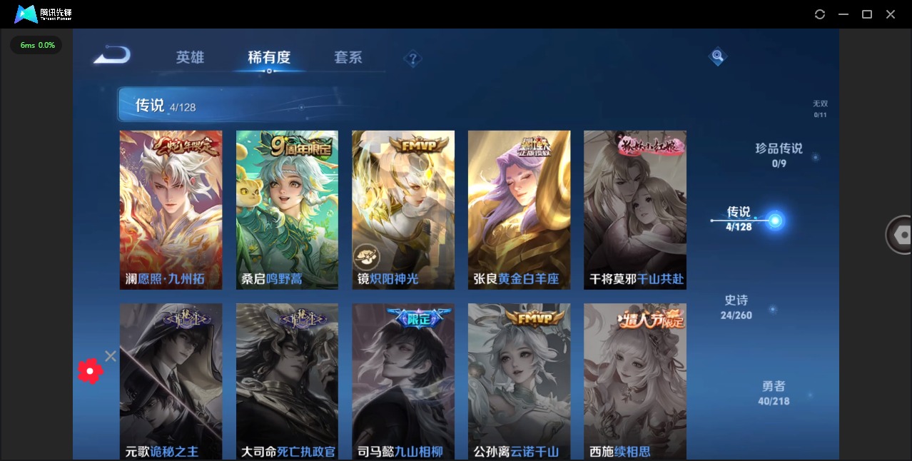 [11577741]V5 1典藏 4传说 111英雄 89皮肤 可修改实名 优质装备:幻阙歌(貂蝉典藏),黄金白羊座,炽阳神光,涂山容容 珍宝阁皮:万物之道 限定皮:愿照·九州拓(澜年限),鸣野蒿,五谷丰年,李小龙 史诗皮:黄金分割率,特工魅影,江河有灵,偶像歌手,晚萤,时之恋人-孙尚香,绅士熊喵,星夜王子,心灵骇客,暗隐猎兽者,鬼剑武藏,地狱岩魂,缤纷独角兽,水晶猎龙者,箭羽风息,金属风暴,鹰眼统帅,魅力维加斯