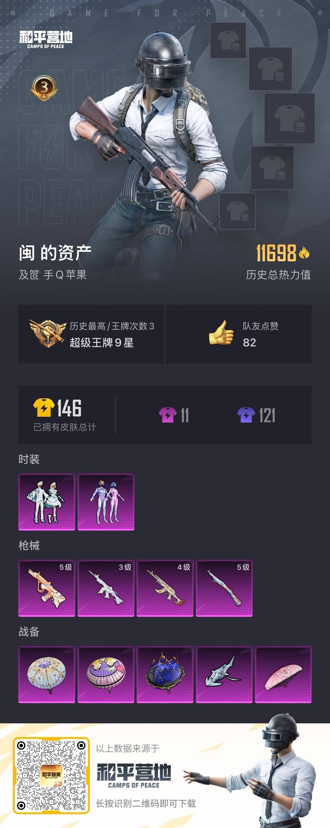- PX_1983111- 安卓手Q-0王牌印记-1粉装-2特效枪-0载具-18332热力值-46套装-62枪皮-0卓越印记-0传奇印记 【1粉装】,迷蝶贵族 【2特效枪】SCAR-L-青春物语-4级 Kar98K-巳巳如意-5级 【1稀有紫装】,暗夜魅影, 【46稀有时装】,暗夜魅影,龙魂突击队,战术大师,智谋强哥,SS16特训,福星高照,都市漫游者,虎虎生威吉莉,夏日音浪,糖果砰砰,萌黄之夏,