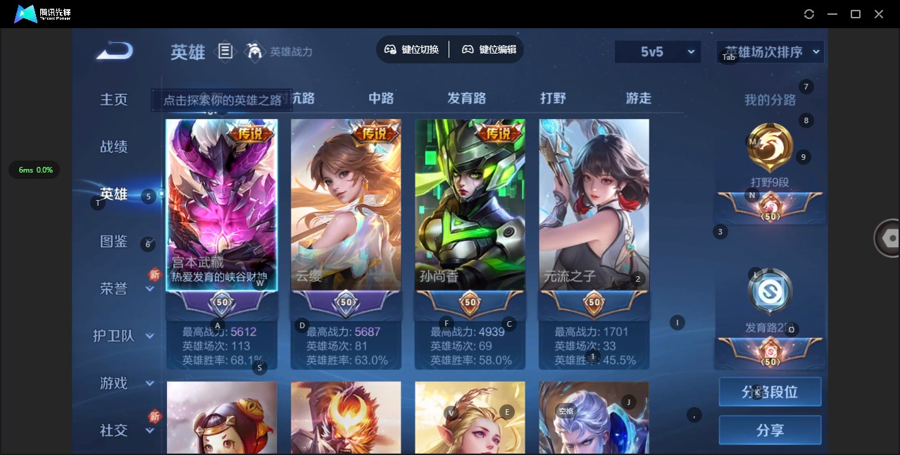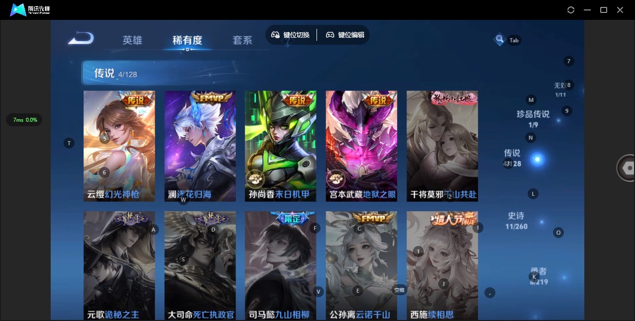 - [12149927]V6 4传说 112英雄 103皮肤 可修改实名 优质装备:云鹰飞将(小将军),久胜战神,炽阳神光,无双飞将,涂山容容 限定皮:逐梦之音 史诗皮:星界战将,紫霞仙子,千年之狐,蒙恬荣光圣徽,晚萤,修罗,水果甜心,幽灵船长,鬼剑武藏,纤云弄巧,水晶猎龙者,赏金猎手