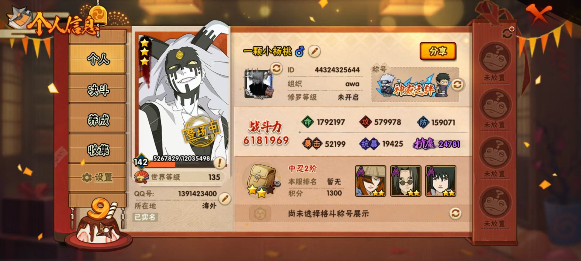 - 火影忍者手游/QQ/安卓QQ1-100区/1区宇智波佐助