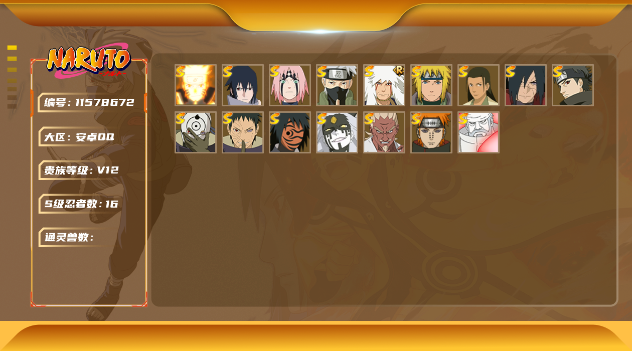 [11578672]V12 16S 可二次 S级忍者:宇智波止水「须佐能乎」,艾「忍界大战」,大筒木桃式,宇智波斑「秽土转生·解」,千手柱间·木叶创立,宇智波佐助「永恒万花筒」,神秘面具男 「红夜之刃」,春野樱 「忍界大战」,大筒木金式「博人传」,漩涡鸣人 「九喇嘛连结」,宇智波带土 「忍界大战」,自来也 「舞之豪杰」,旗木卡卡西「须佐能乎」,“宇智波斑” 「白面具」,佩恩「天道」,波风水门