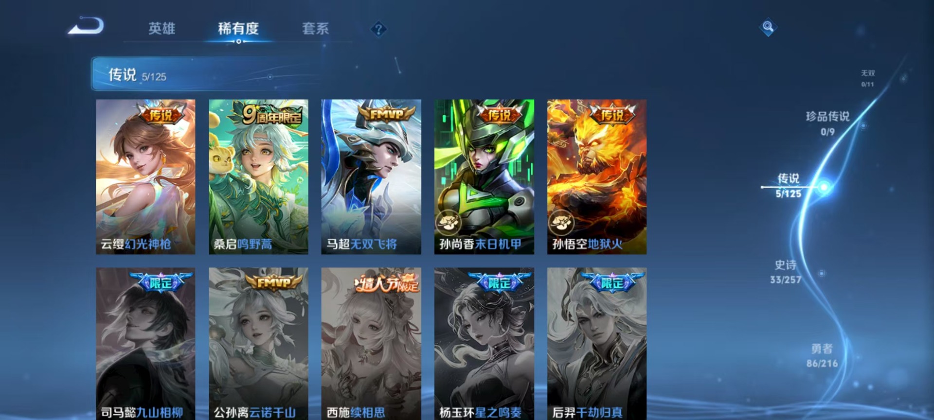 - [11876940]V10 2典藏 1珍品无双 2无双 5珍品传说 60传说 125英雄 531皮肤 可修改实名 优质装备:馥梦繁花,星域神启(倪克斯贼亮),弑枪猎影(韩信典藏),雪境奇遇-甄姬,器灵·螭龙剑,江户川柯南,怪盗基德,器灵·落星盏,酷洛米之心,黄金狮子座,云鹰飞将(小将军),绛天战甲(鸡嘴战神),黄金白羊座,久胜战神,炽阳神光,一念神魔,云霓雀翎,地狱火,仲夏夜之梦(大飞蛾),零号·赤焰,地狱之眼,胖达荣荣,李逍遥,乞巧织情,游龙清影(小青龙),淬星耀世,超时空战士-狄仁杰,挚爱之约,无双飞将,山海·炽霜斩(李信年限),炽翼辉光(娃娃菜牛角包),浮生妄,百相守梦(张飞),霜月吟,澜逐花归海,艾琳觅芳踪,牧神诗旅,玄雷天君,千劫归真 珍品传说:时之奇旅-孙策 传说皮:乘龙·问璇玑(孙尚香年限),典韦战鼓燎原,云诺千山,铠冥王哈迪斯,续相思,星之鸣奏,祥瑞亨通,幻光神枪 珍宝阁皮:妄想食味,优雅恋人,女武神,玩趣恶龙 限定皮:愿照·九州拓(澜年限),愿照·福禄聚(蔡文姬年限),愿照·岁时盈(虞姬年限),愿照·山河定(司空震年限),愿照·众生和(妲己年限),愿照·千秋盛(女娲年限),逐霄战戟,映山客,陌上桑,鸣野蒿,夏侯惇霜北刀,至尊宝,白虎志(电光耗子),凤求凰(白切鸡),太华(伽罗年限),异界灵契(白毛香),白鹤梁神女,白晶晶,时雨天司(水龙头),飞衡(韩信年限),遇见飞天,高山流水,诗剑行,齐天大圣,匿光决锋者,五谷丰年,青龙志(铠年限),冰锋战神,武圣,天狼运算者,游园惊梦,梁祝,御风骁将(吕布年限),天狼狩猎者,烈魂,天狼溯光者,奔雷神使(牛魔年限),祈雪灵祝(雪兔子),李小龙,如梦令-后羿,霸王别姬-虞姬,圣诞老人,默契交锋-兰陵王,默契交锋-花木兰,猪悟能,一生所爱,引擎之心,神奇女侠,寅虎·赤拳(老虎年限),启示之音,梦圆繁星,山海·玄木吟(马可年限),冰霜神祇 史诗皮:鸭鸭历险记-刘禅,飞车小橘子,苍鳞隐世,器灵·浮梦炉,糖绘人间,狼魂孤将,绮世丹青,瑰影绮梦,化蝶舞,星界特工,星界战将,灵蛊蚀心,龙之律动,雪豹·霜爪,藏狐·褐绒,石田雨龙,百相守梦-周瑜,戍鼓铭心,茶境仙,海诺心动手记,破空之剑,战舞者,涂山红红,东方月初,蒙犽顽岩魄,埋骨钱,芈月浮光幕影,怒海争锋,谪仙醉月,上官婉儿群星魔术团,蔬乡物语(鲁班七号),百相守梦-百里守约,炽弈燎原,百相守