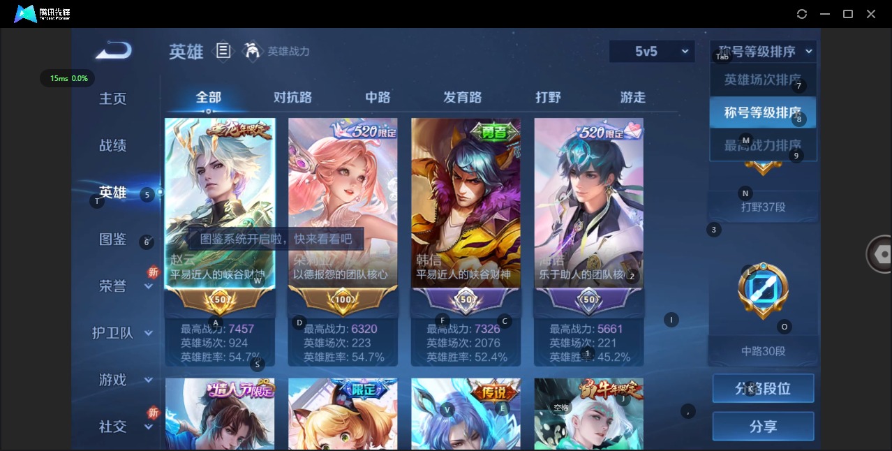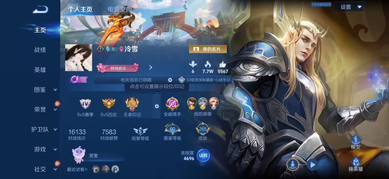 - PX_2102721-贵族等级: V5 英雄数: 94 皮肤数: 50 传说皮: 霜月吟,澜逐花归海