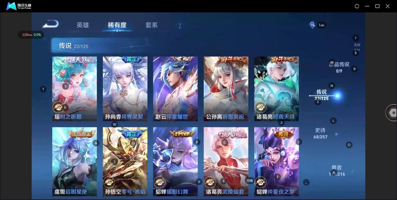 [11578987]V8 22传说 123英雄 265皮肤 可修改实名 女号 传说皮:乘龙·铭钟鼎(赵云年限),朵莉亚心动手记,山海·炽霜斩(李信年限),零号·赤焰,地狱火,仲夏夜之梦(大飞蛾),末日机甲-孙尚香(绿蚂蚱),淬星耀世,猫影幻舞,无双飞将,碎云,山海·苍雷引(电光曜子),记忆之芯(机甲兔) 珍宝阁皮:妄想食味,蔷薇恋人,女武神 限定皮:鸣野蒿,至尊宝,武陵仙君(小桃花),异界灵契(白毛香),绯月行,时雨天司(水龙头),山海·碧波行(瑶年限),至美·乘鲤谣,高山流水,诗剑行,五谷丰年,游园惊梦,天狼溯光者,祈雪灵祝(雪兔子),李小龙,默契交锋-花木兰,孙行者,一生所爱,引擎之心,时之祈愿-瑶(瑶传限),百木心枪,时之奇旅-妲己,山海·玄木吟(马可年限) 史诗皮:星界战将,海诺心动手记,蔬乡物语(鲁班七号),乘龙·聚宝船(安琪拉年限),白龙吟,黄金分割率,特工魅影,千年之狐,江河有灵,蒙恬荣光圣徽,冰冠公主,偶像歌手,无限星赏官,电玩·爆裂旋风,百相守梦(刘备),银翎春语,猫狗日记-大乔,节奏热浪,女仆咖啡,水果甜心,绅士熊喵,星夜王子,心灵骇客,功夫厨神,德古拉伯爵,鬼剑武藏,纤云弄巧,繁星吟游(呼啦呼啦),拒霜思,水晶猎龙者,曙光守护者,箭羽风息,金属风暴,原初追逐者,圣诞恋歌,鹰眼统帅,王者之锤,魅力维加斯,黎明之约,无心,未来纪元-赵云