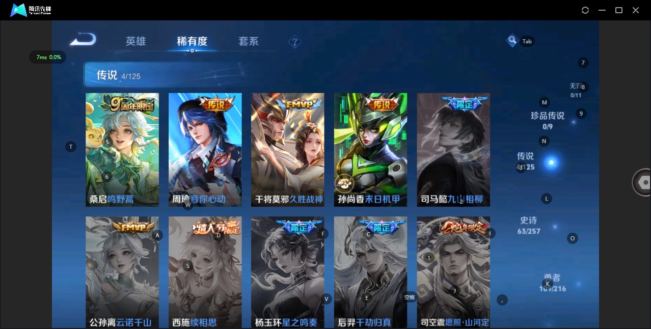 - [11254245]V6 3传说 119英雄 104皮肤 可修改实名 优质装备:地狱火,无双飞将 珍宝阁皮:蔷薇恋人 限定皮:逐霄战戟,鸣野蒿,降魔,五谷丰年 史诗皮:龙之律动,破空之剑,埋骨钱,怒海争锋,黄金分割率,特工魅影,千年之狐,末日机甲-吕布,猫狗日记-孙策,节奏热浪,水果甜心,星夜王子,德古拉伯爵,暗隐猎兽者,幽灵船长,鬼剑武藏,暗渊魔法,乘风破浪,逐浪之夏,水晶猎龙者,箭羽风息,金属风暴,鹰眼统帅,魅力维加斯,赏金猎手,无心,未来纪元-赵云
