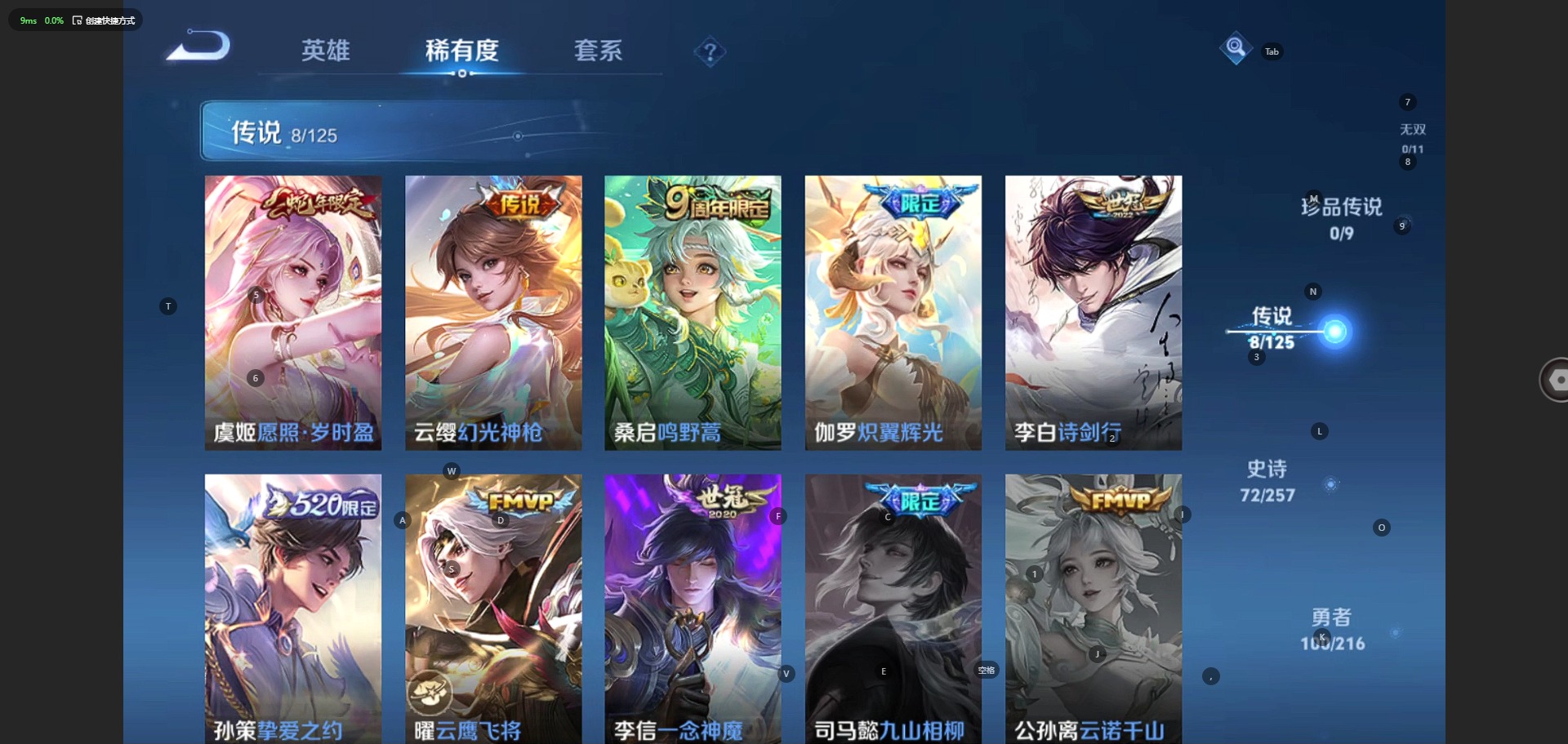 [11579351]V7 8传说 123英雄 215皮肤 可修改实名 传说皮:幻光神枪,一念神魔,云鹰飞将(小将军),挚爱之约,炽翼辉光(娃娃菜牛角包) 珍宝阁皮:蔷薇恋人,玩趣恶龙 限定皮:愿照·岁时盈(虞姬年限),逐霄战戟,鸣野蒿,诗剑行,降魔,五谷丰年,御风骁将(吕布年限),岱宗(典韦年限),李小龙,孙行者,山海·玄木吟(马可年限) 史诗皮:茶境仙,器灵·浮梦炉,百相守梦-百里守约,怒海争锋,蔬乡物语(鲁班七号),琥珀纪元伽罗,破空之剑,紫霞仙子,苍穹之光,电玩小子(小书包),特工魅影,江河有灵,百解令(蒙犽),冰冠公主,偶像歌手,晚萤,魅语,电玩·爆裂旋风,百相守梦(刘备),末日机甲-吕布,猫狗日记-孙策,猫狗日记-大乔,乱世虎臣,修罗,女仆咖啡,水果甜心,星夜王子,心灵骇客,功夫厨神,德古拉伯爵,暗隐猎兽者,幽灵船长,鬼剑武藏,心灵战警,天秀·启明,舞动绿茵,地狱岩魂,纤云弄巧,繁星吟游(呼啦呼啦),拒霜思,缤纷独角兽,乘风破浪,逐浪之夏,水晶猎龙者,曙光守护者,箭羽风息,金属风暴,圣诞狂欢,圣诞恋歌,鹰眼统帅,天秀·音浪,无心,未来纪元-赵云