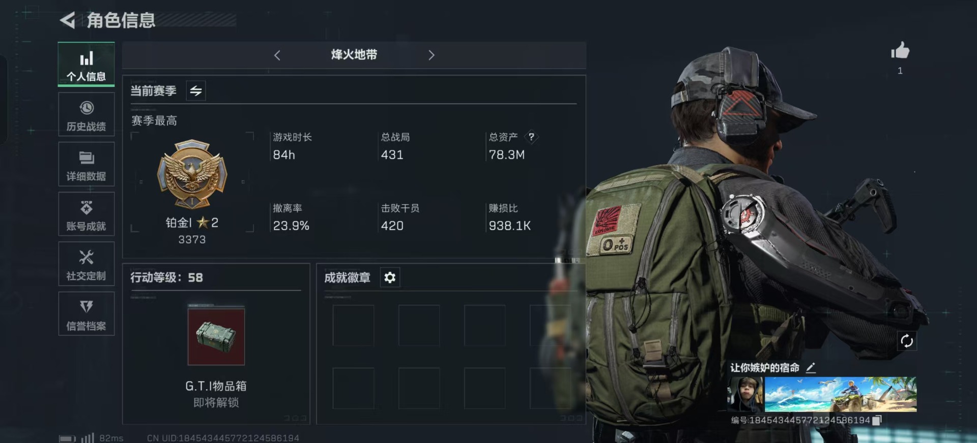 [11579362]总资产:78.3 7传说枪械 可二次 可修改实名 烽火地带段位:铂金 全面战场段位:无段位 哈夫币:545.946 传说武器皮肤:UZI冲锋枪-特斯拉线圈,SR-3M紧凑突击步枪-特斯拉线圈,AK-12突击步枪-特斯拉线圈,复合弓-黑-天际线,CAR-15突击步枪-阿米娅,725双管霰弹枪-送葬人-无题密令,勇士冲锋枪-能天使-午夜邮差 史诗武器皮肤:PKM通用机枪-荒野求生,MP5冲锋枪-深海恐惧,SR-3M紧凑突击步枪-荒野求生,M16A4突击步枪-竞赛选手,SVD狙击步枪-荒野求生,SV-98狙击步枪-林中猎手,PSG-1射手步枪-无垢,AS Val突击步枪-典狱官,M250通用机枪-囚徒,SV-98狙击步枪-囚徒,MP7冲锋枪-无垢