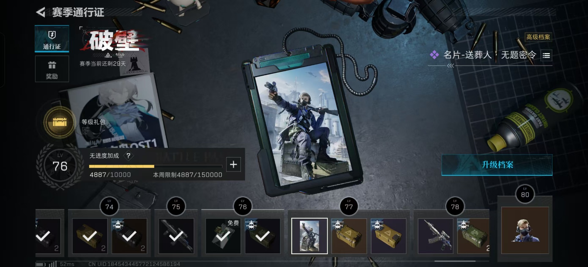 - [11601618]总资产:101.7 1干员外观 6传说枪械 高级安全箱(2×3)9.15号到期 可二次 可修改实名 烽火地带段位:黑鹰 全面战场段位:列兵 哈夫币:12.434 传说武器皮肤:复合弓-黑-天际线,AWM狙击步枪-捞点薯条,腾龙突击步枪-捞点薯条,93R-捞点薯条,勇士冲锋枪-能天使-午夜邮差,725双管霰弹枪-送葬人-无题密令 干员外观:蜂医-送葬人·无题密令(S5)