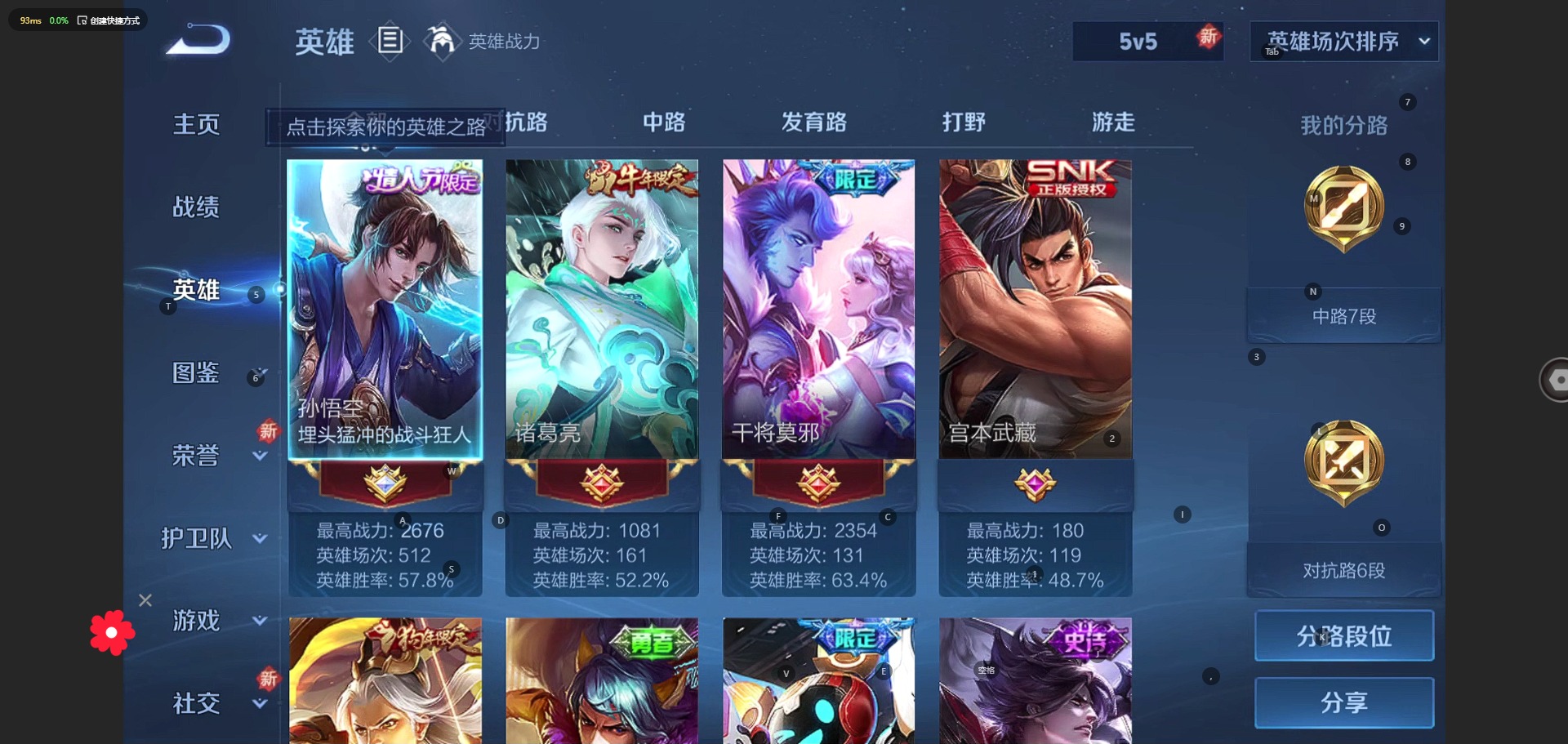 - PX_2093029-实名: 可修改 贵族等级: V3 英雄数: 118 皮肤数: 75 传说皮: 澜逐花归海 限定皮: 李小龙,鸣野蒿